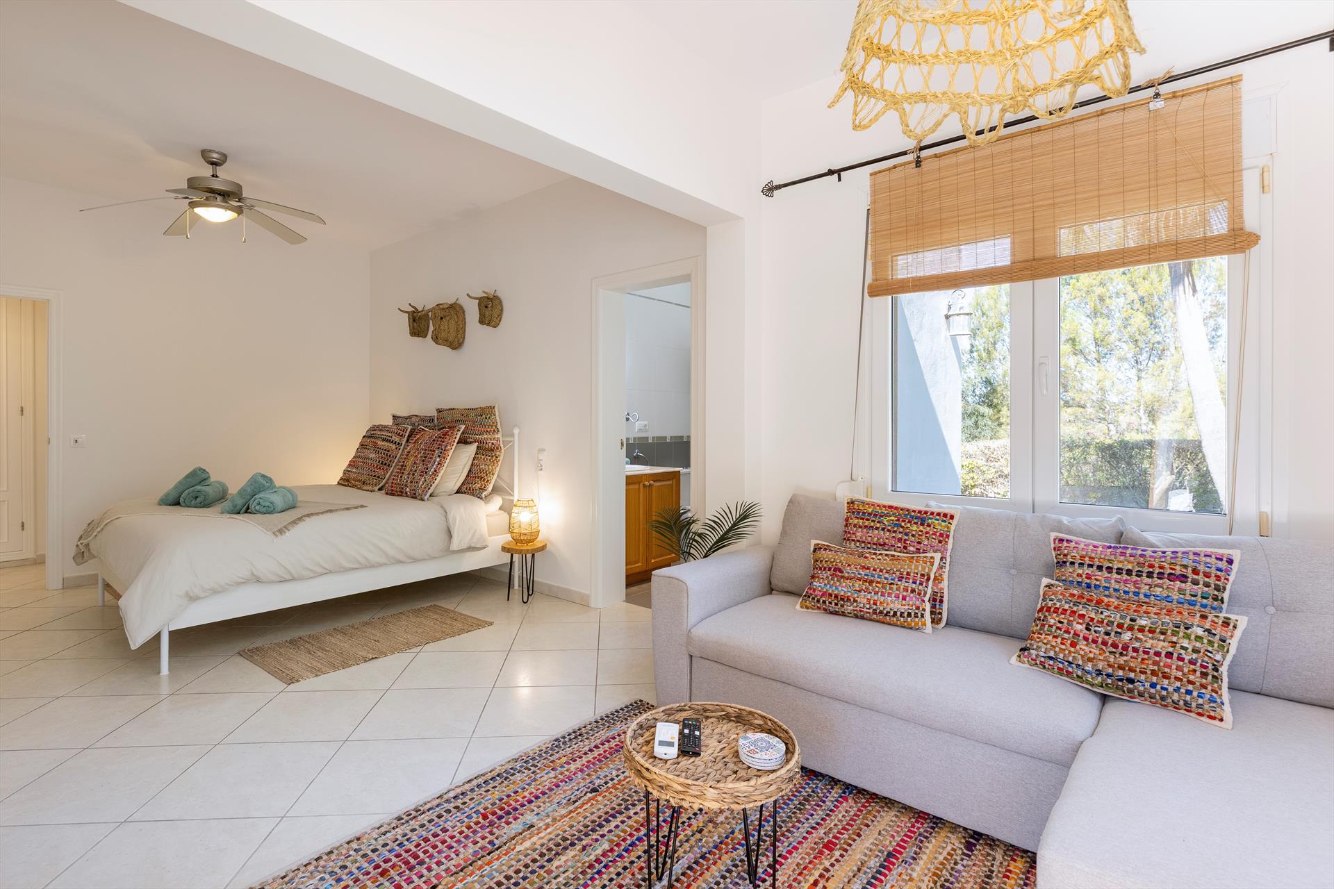 • bedroom with air conditioning, double bed and en-suite bathroom