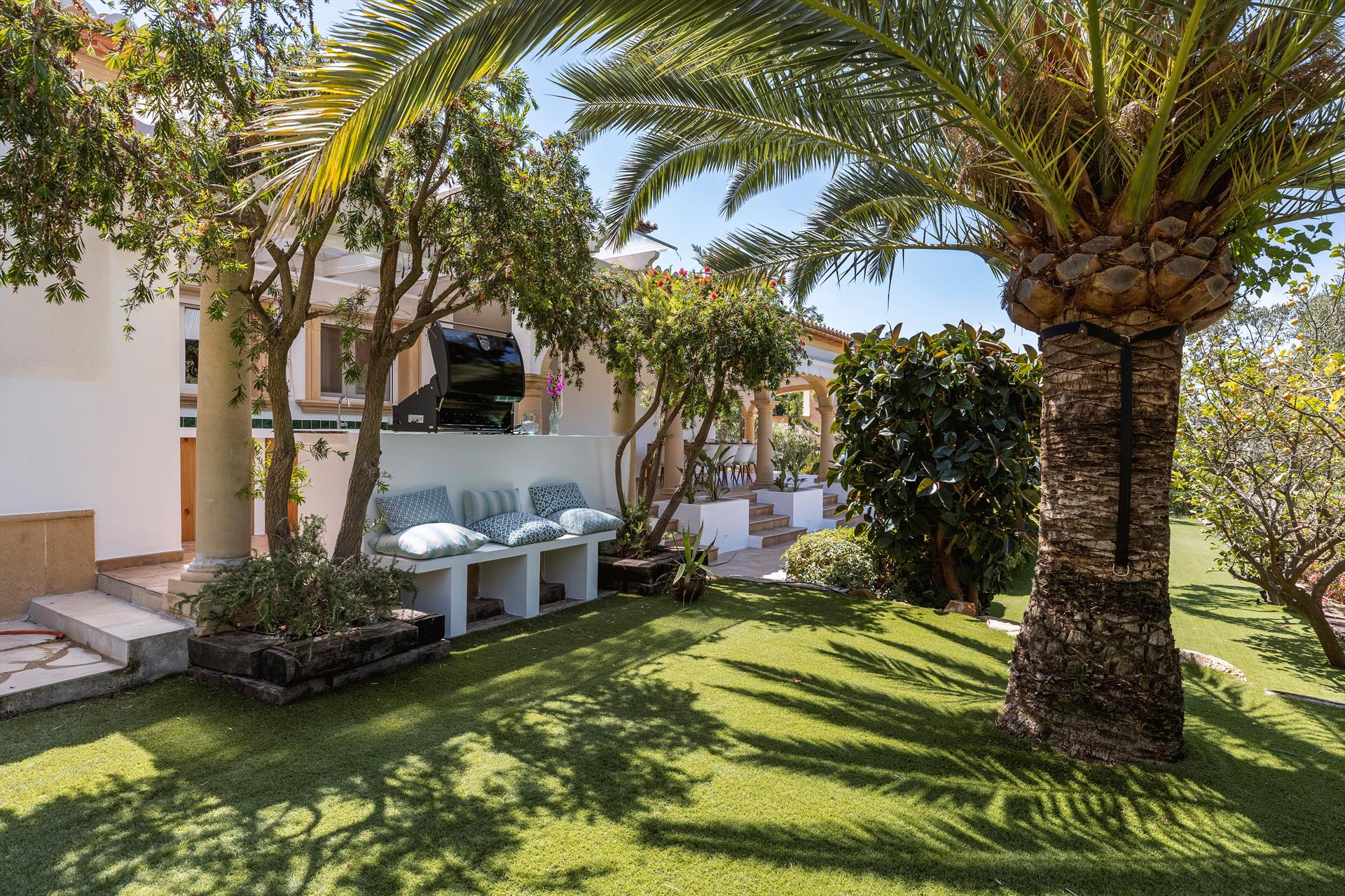 • wonderful lawned garden with trees and garden furniture with sunbeds