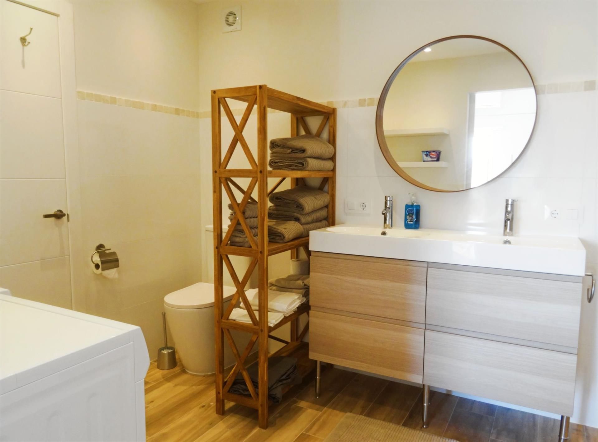 • kupaonica en suite s dvojnom umivaonikom, tušem, WC-om i sušilom za kosu