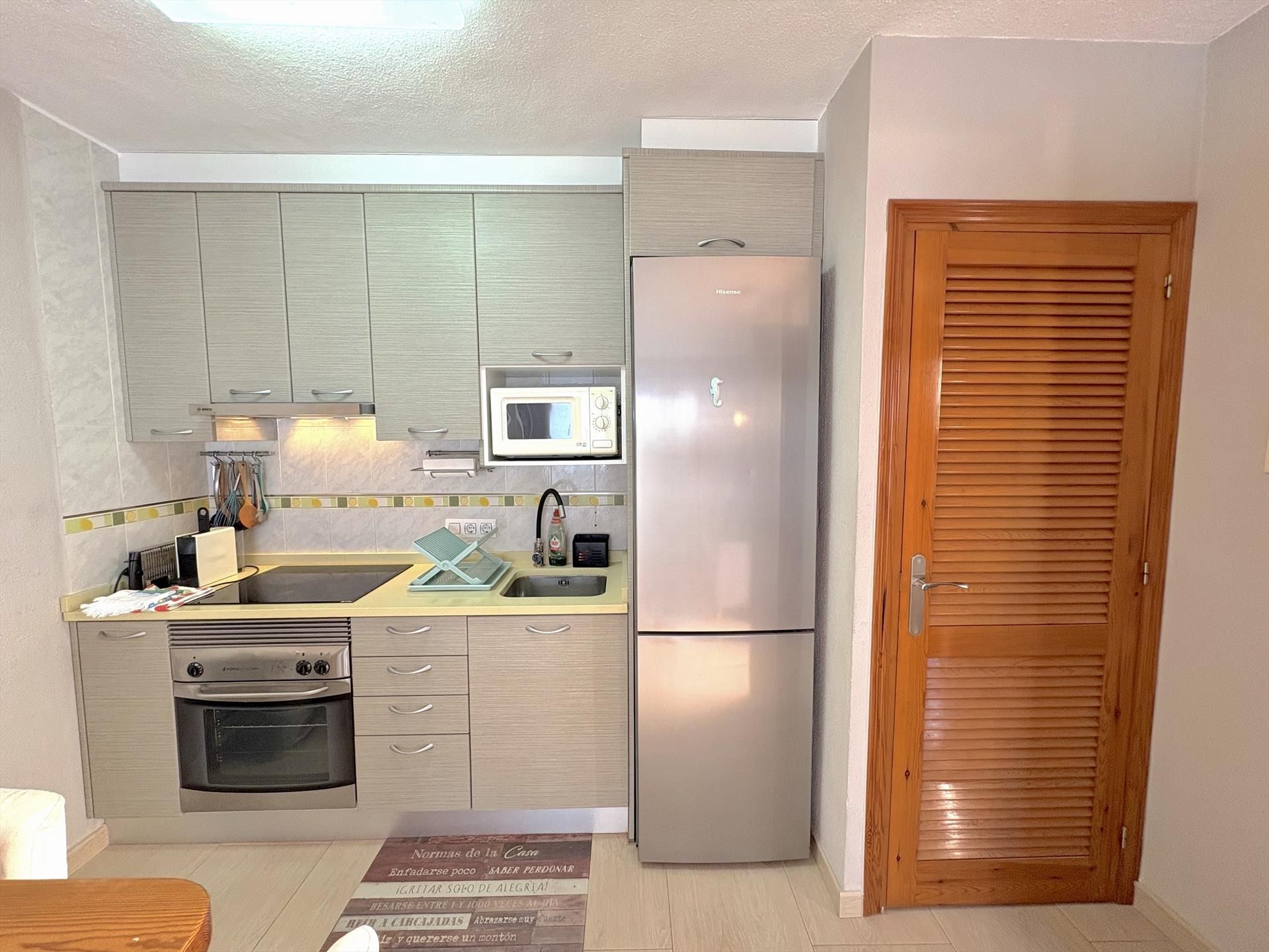 • kuhinja-blagovaonica s električnom pločom za kuhanje, električnom pećnicom, mikrovalnom pećnicom, hladnjakom s zamrzivačem, aparatom za kavu, električnim kuhalom za vodu i toasterom