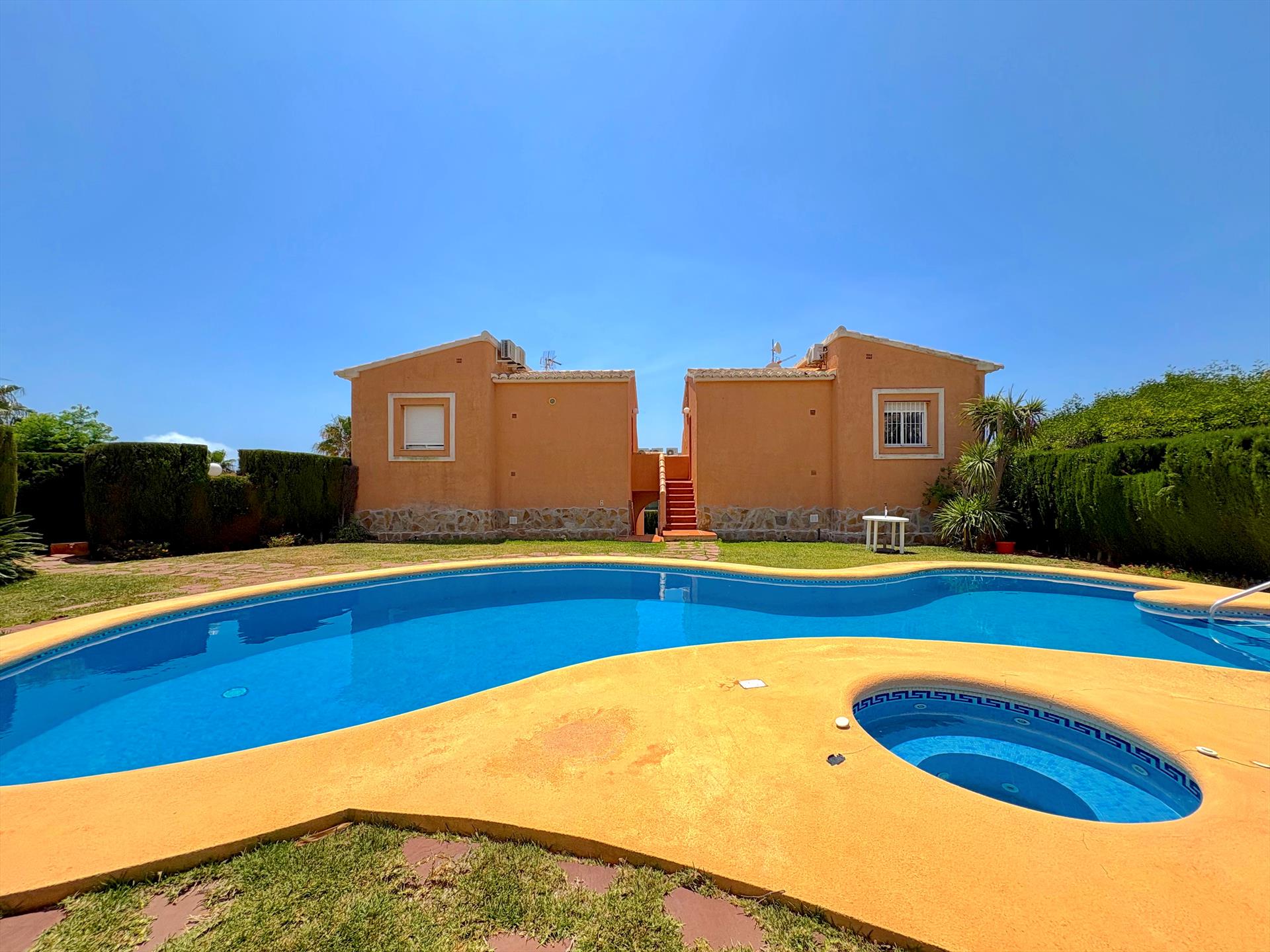 Stan ima 2 spavaće sobe i 1 kupaonicu. Smještaj nudi zajednički vrt s travnjakom i prekrasan pogled na bazen i vrt.