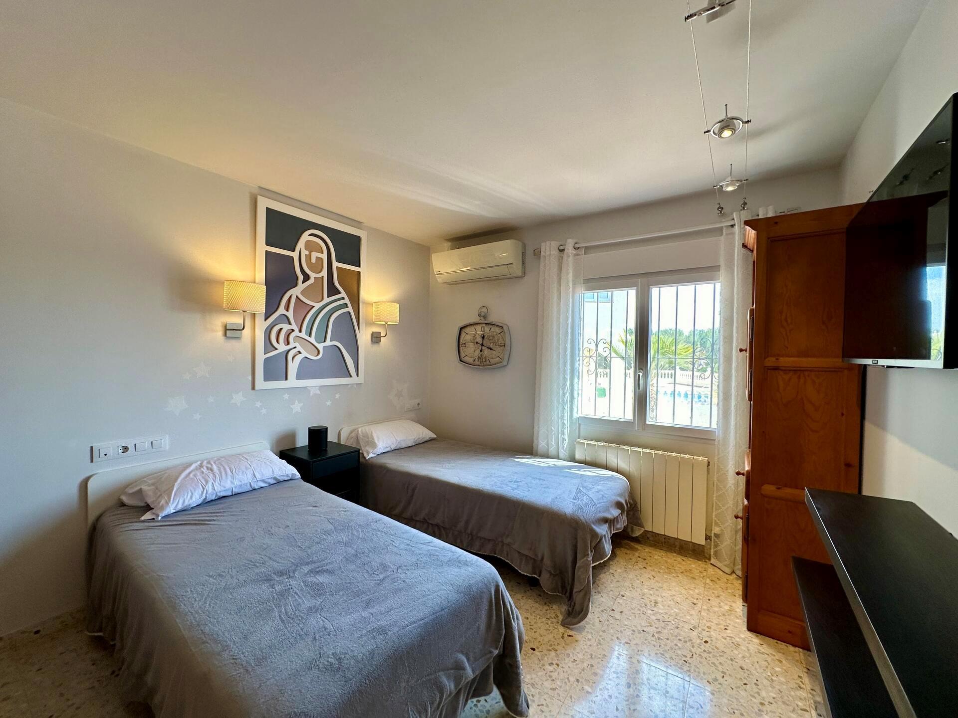 • spavaća soba s klima uređajem i 2 kreveta za jednu osobu (dimenzije 200 x 90 cm) i televizijom