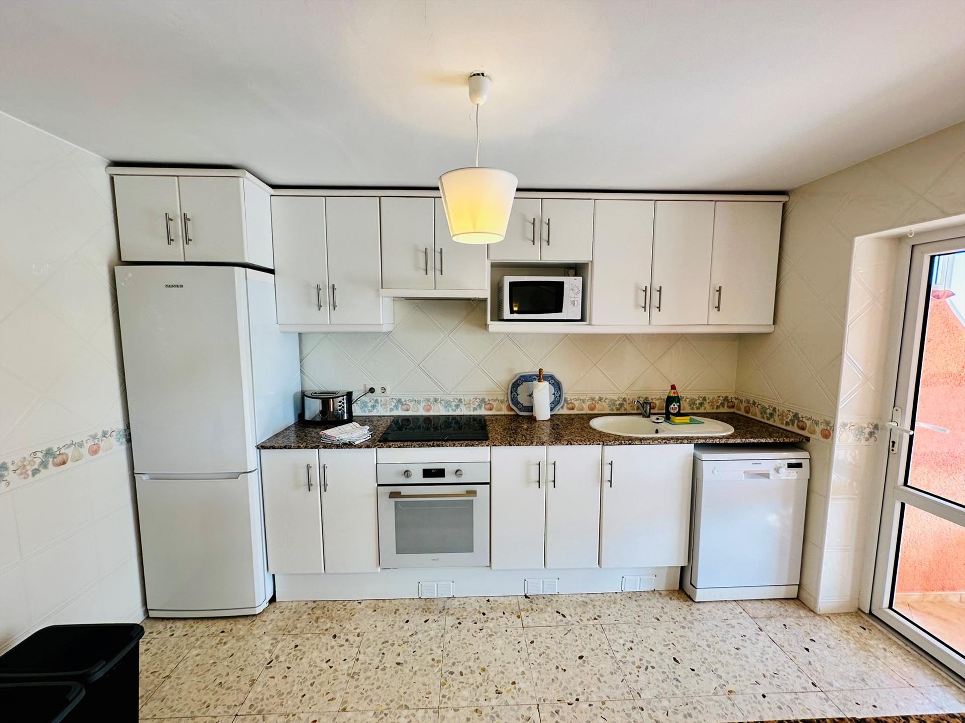 • kuhinja s električnom pločom, električnom pećnicom, mikrovalnom, perilicom posuđa, hladnjakom s zamrzivačem, aparatom za kavu, električnim kuhalom za vodu i tosterom