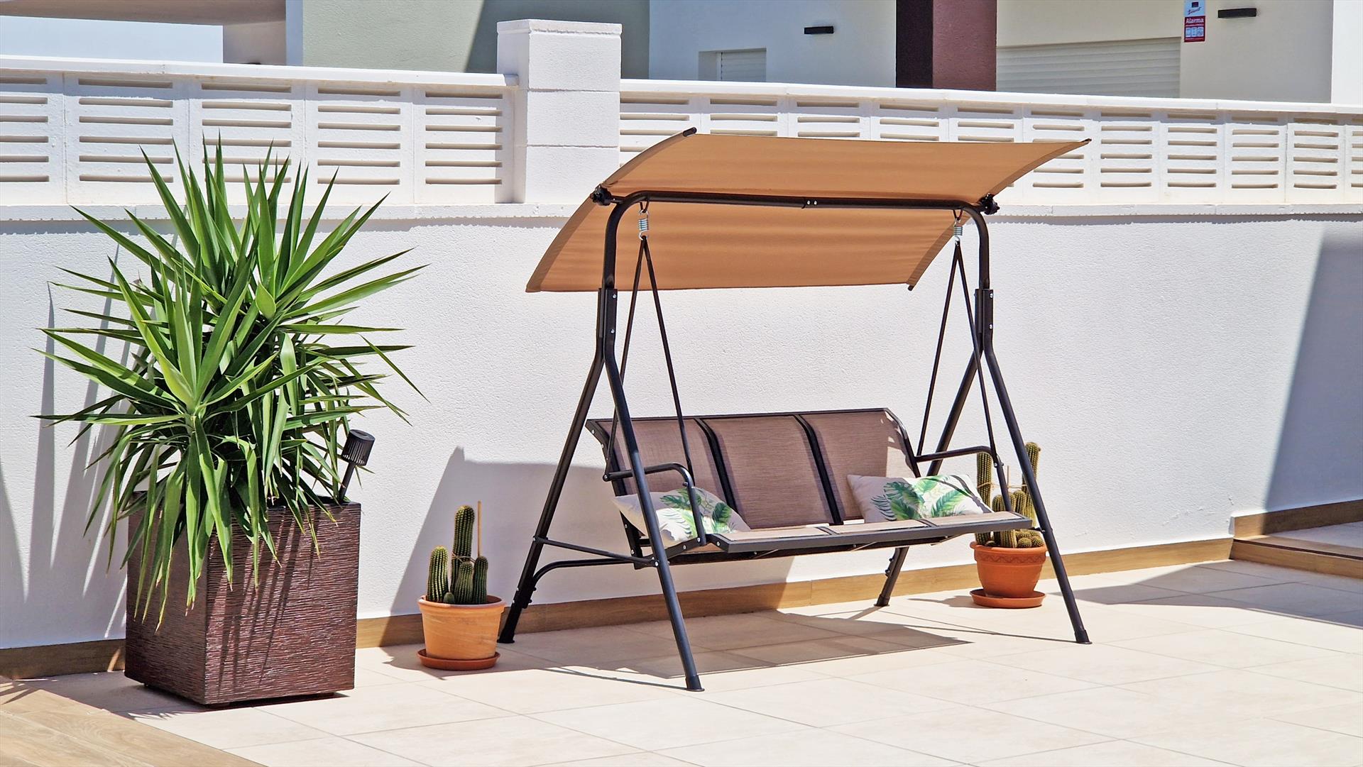 Extérieur : Salon de jardin et transats (pas nécessairement disponibles dans les appartements et maisons de ville)