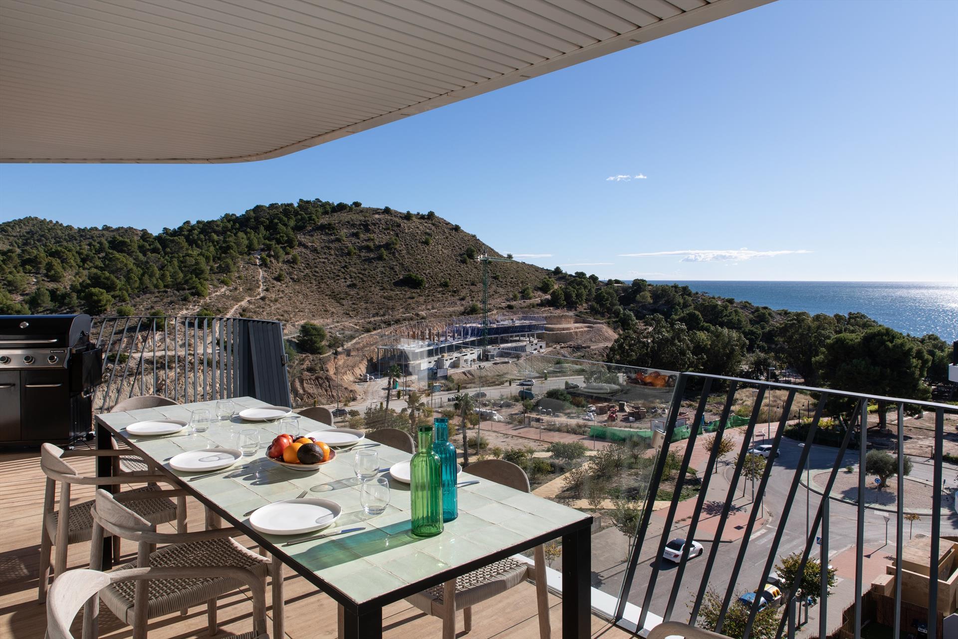 Le penthouse dispose de 3 chambres et de 3 salles de bains, réparties sur 2 niveaux. L'hébergement offre intimité, un jardin commun gazonné avec des arbres, de magnifiques vues sur la mer, ainsi que des vues splendides sur la vallée, les montagnes et la rue. Son confort et la proximité de la plage, des activités sportives et des installations de loisirs en font un penthouse idéal pour passer vos vacances en Espagne en famille ou entre amis.