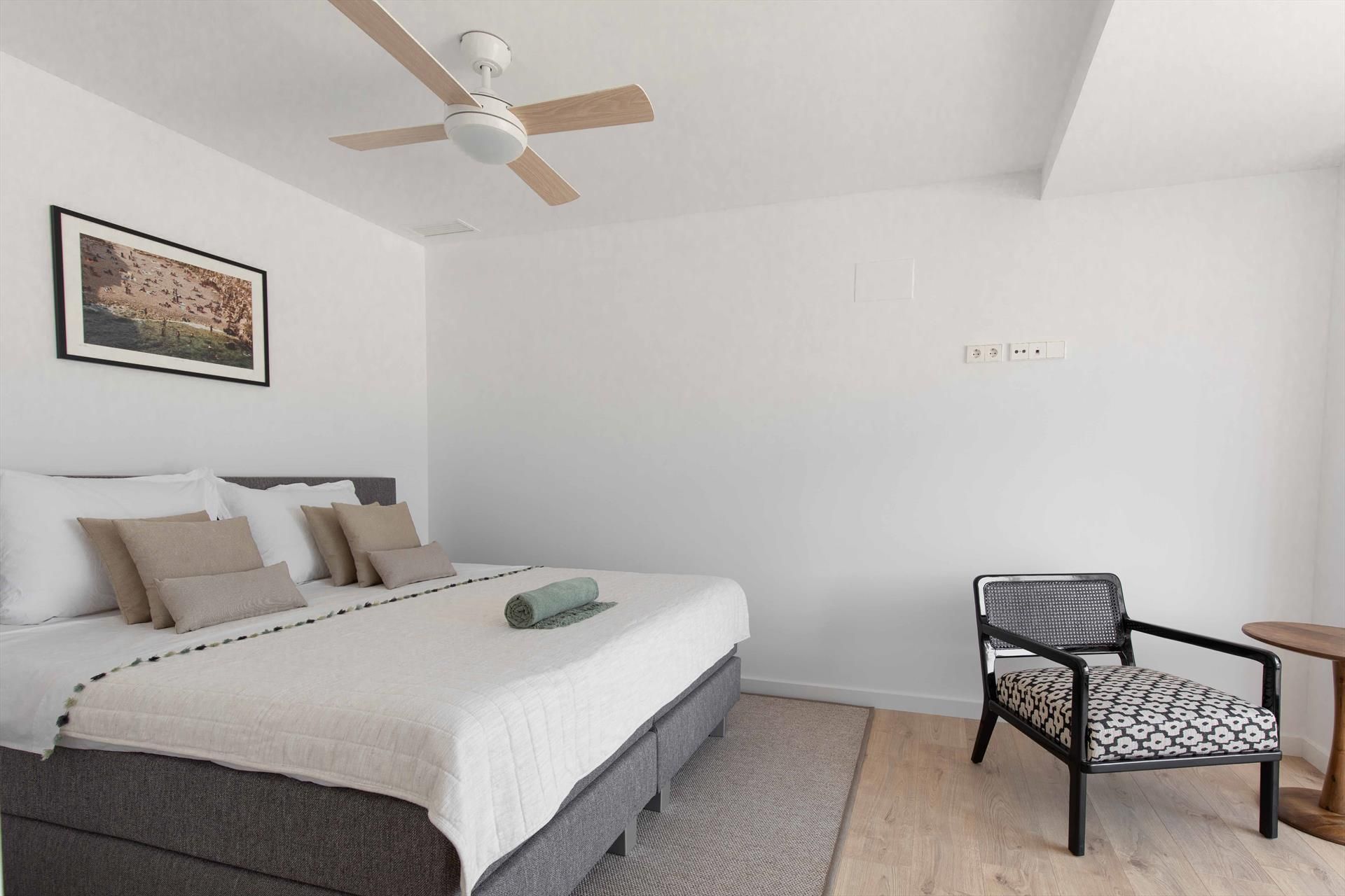 • 3 chambres climatisées, chacune avec un lit king-size (mesurant 200 par 200 cm), ventilateur, et salle de bains privative