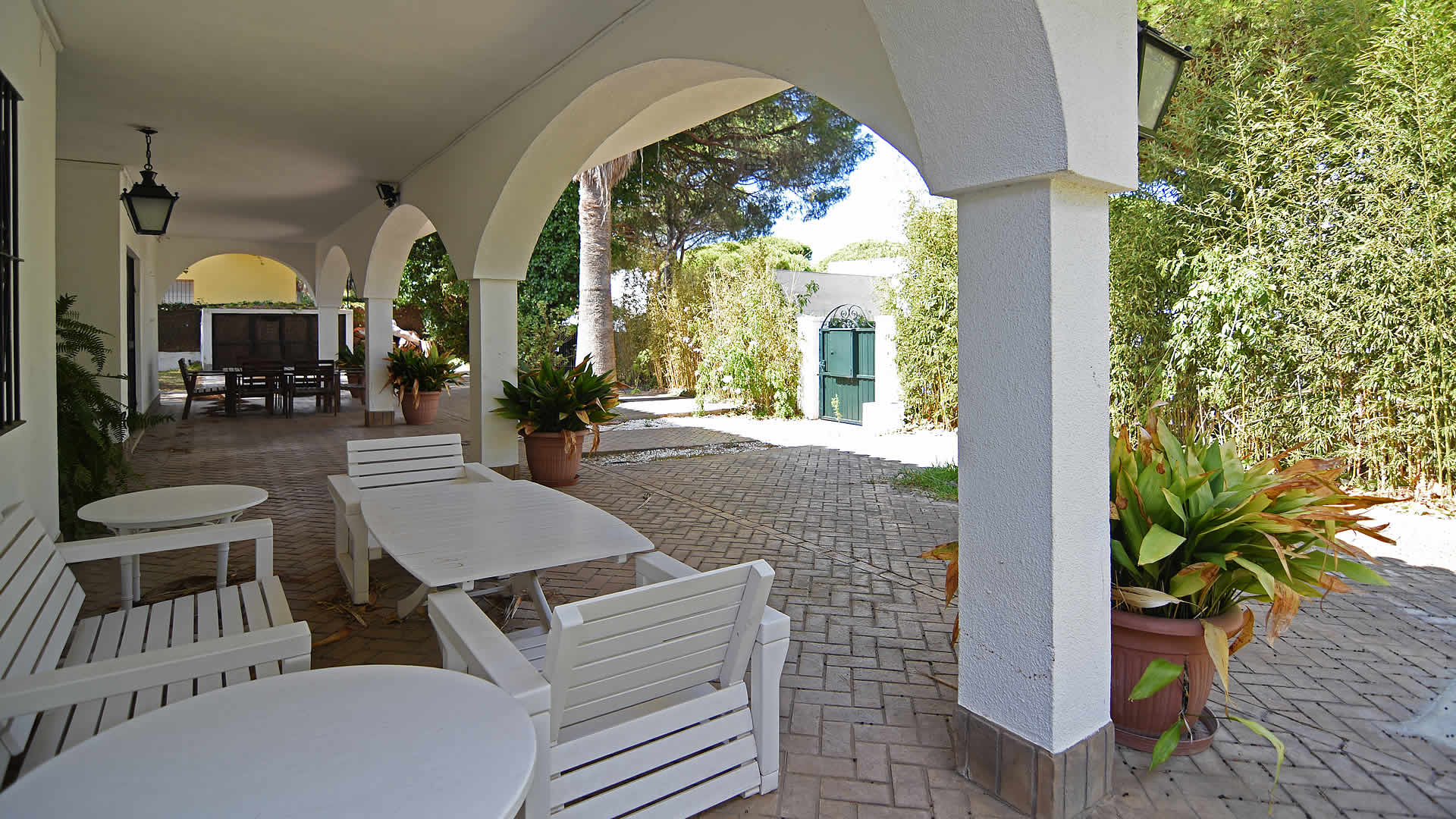 Non seulement y a-t-il la plage à 5 minutes à pied, mais aussi une supérette, un restaurant, un bar et un kiosque à journaux, tandis que Conil de la Frontera (7 km) offre des services plus étendus et une bonne sélection de restaurants et de bars de tapas. Conil offre une vie nocturne bourdonnante, surtout en été! La région offre aussi la possibilité de jouer au tennis, beach ball ou volley-ball. Il y a plusieurs terrains de golf dans les environs, Sancti Petri Golf étant le plus près (1 km). Si vous avez envie de découvrir la région, alors n'oubliez pas de visiter le célèbre spectacle équestre de Jerez de la Frontera, tous les jeudis, et une des célèbres caves à vin, celle de Gonzalez Byass par exemple. Les villes de Cadix et Sanlúcar de Barrameda sont aussi très intéressantes, tandis que Séville et la ville de Ronda sont les points saillants de l'ouest de l'Andalousie et à un peu plus d'une heure de route. L'extérieur de la villa comprend un beau jardin avec pelouse de 1 400 m2 avec plusieurs aires de repos et une attrayante piscine privée. Pour le confort des familles avec petits enfants, la piscine a été récemment clôturée, raison pour laquelle vous ne la voyez pas sur les photos. Meubles de patio, chaises longues et un barbecue pour vos repas a l'air frais sont fournis, complétant cette propriété qui ne manquera pas de satisfaire tous les goûts.