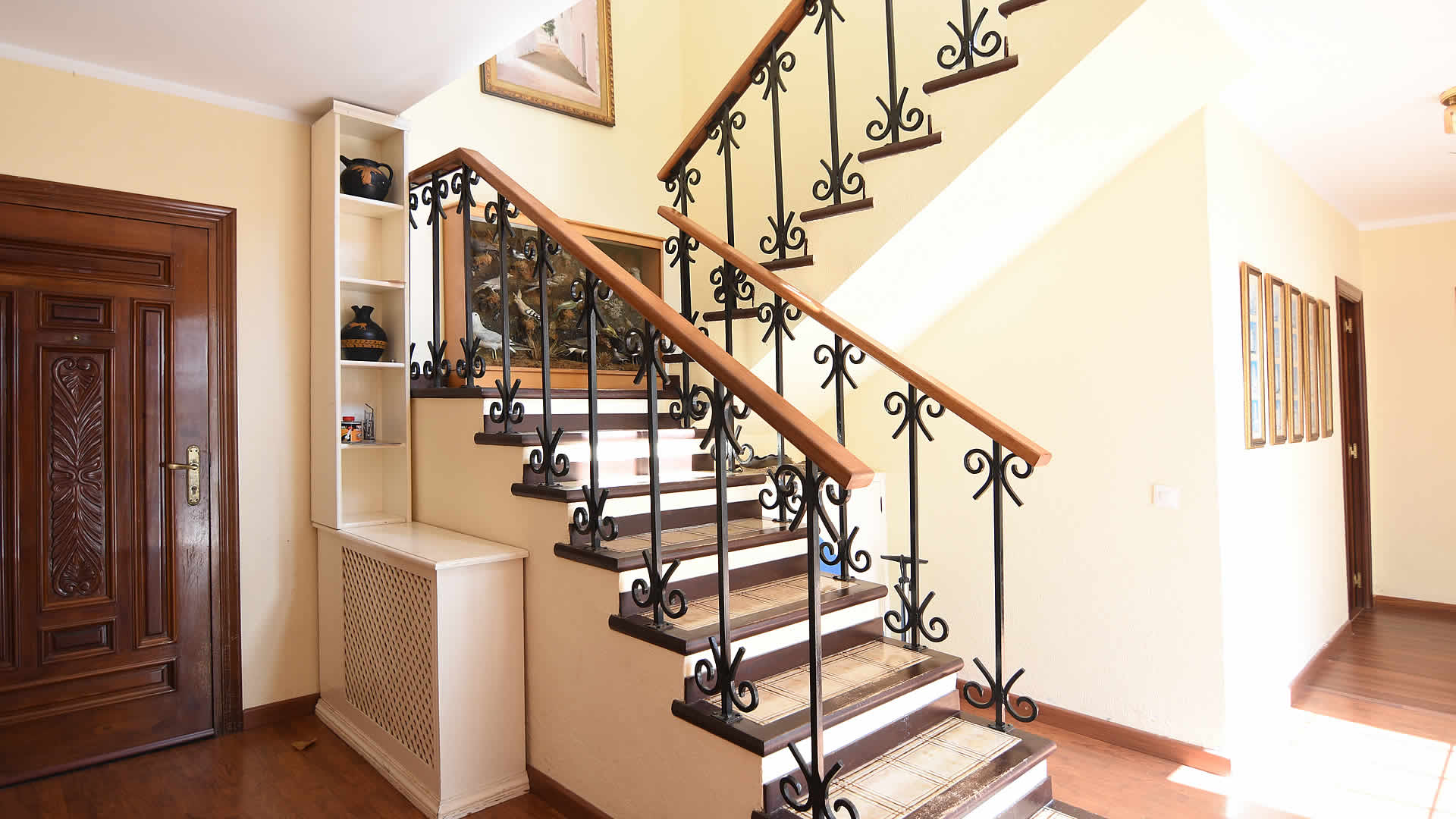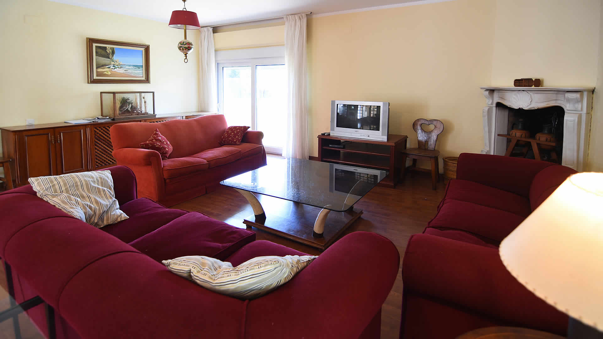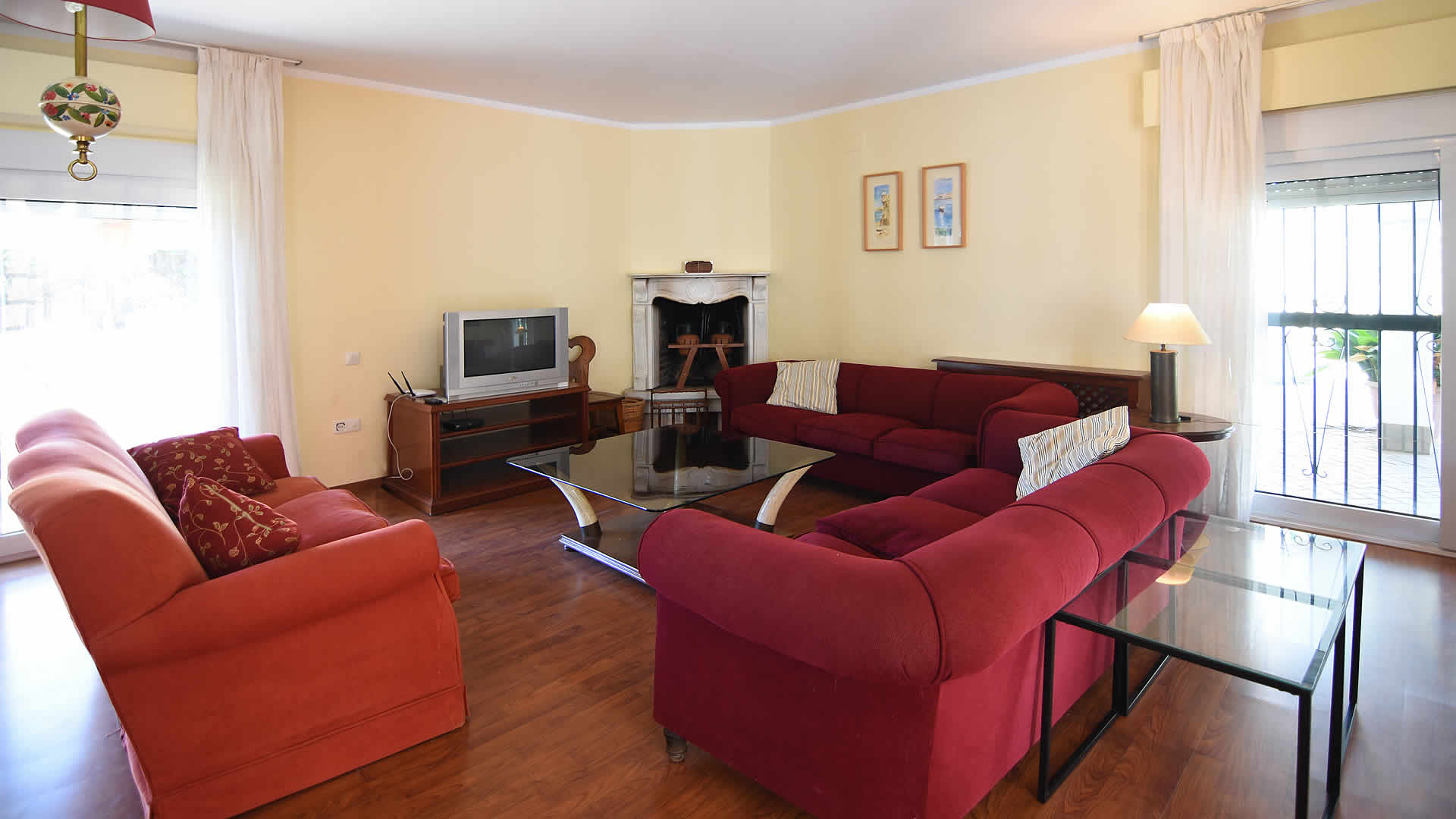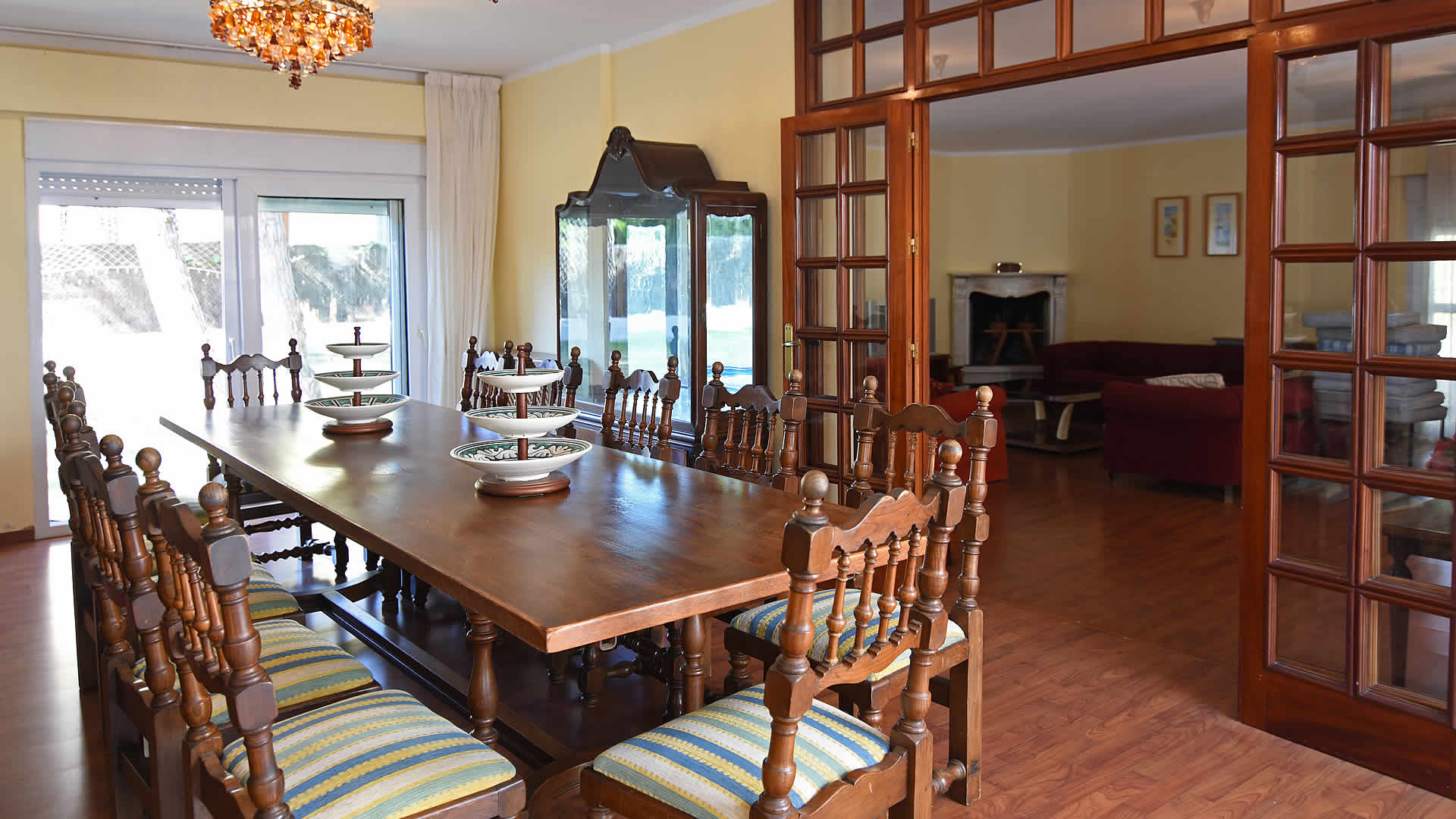 La villa a une surface de près de 400 m2, toutes les pièces au rez-de-chaussée à l'exception d'une chambre et d'une grande salle de bain avec une baignoire à remous au premier étage. Bien qu'elle ne soit pas neuve, elle est bien entretenue et meublée avec confort et élégance. Le salon/salle à manger et la cuisine sont très spacieux, cette dernière équipée d'une plaque de cuisson en céramique, un four, réfrigérateur / congélateur, micro-ondes, lave-vaisselle et lave-linge.
