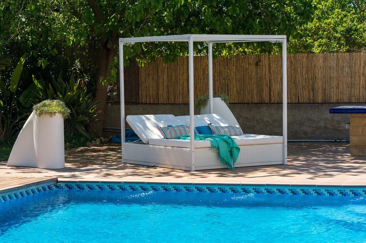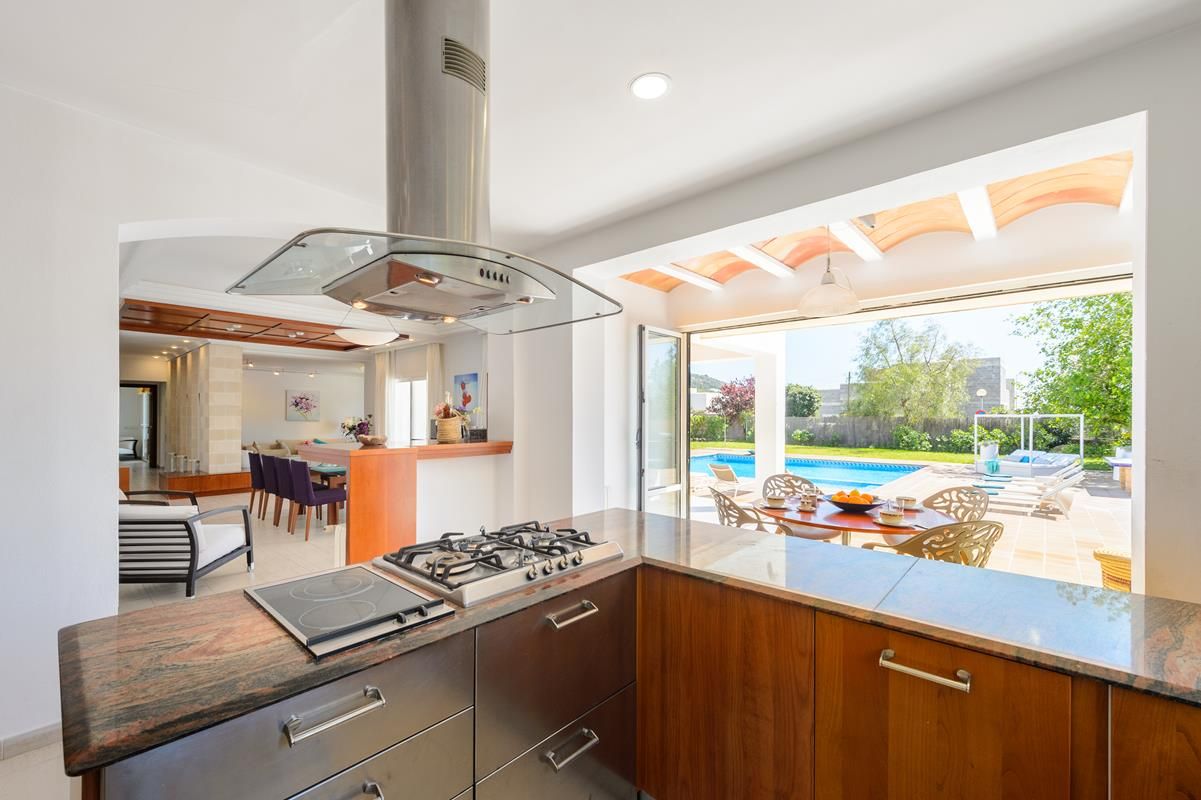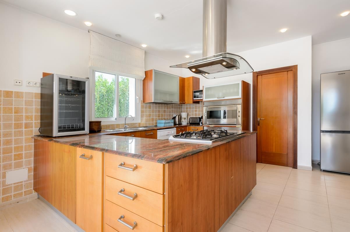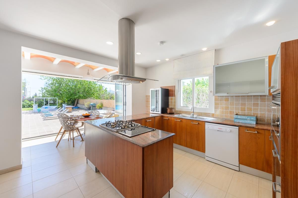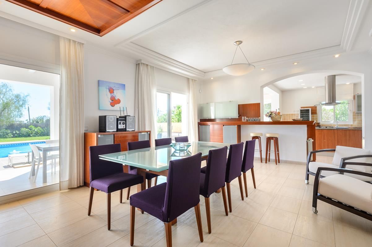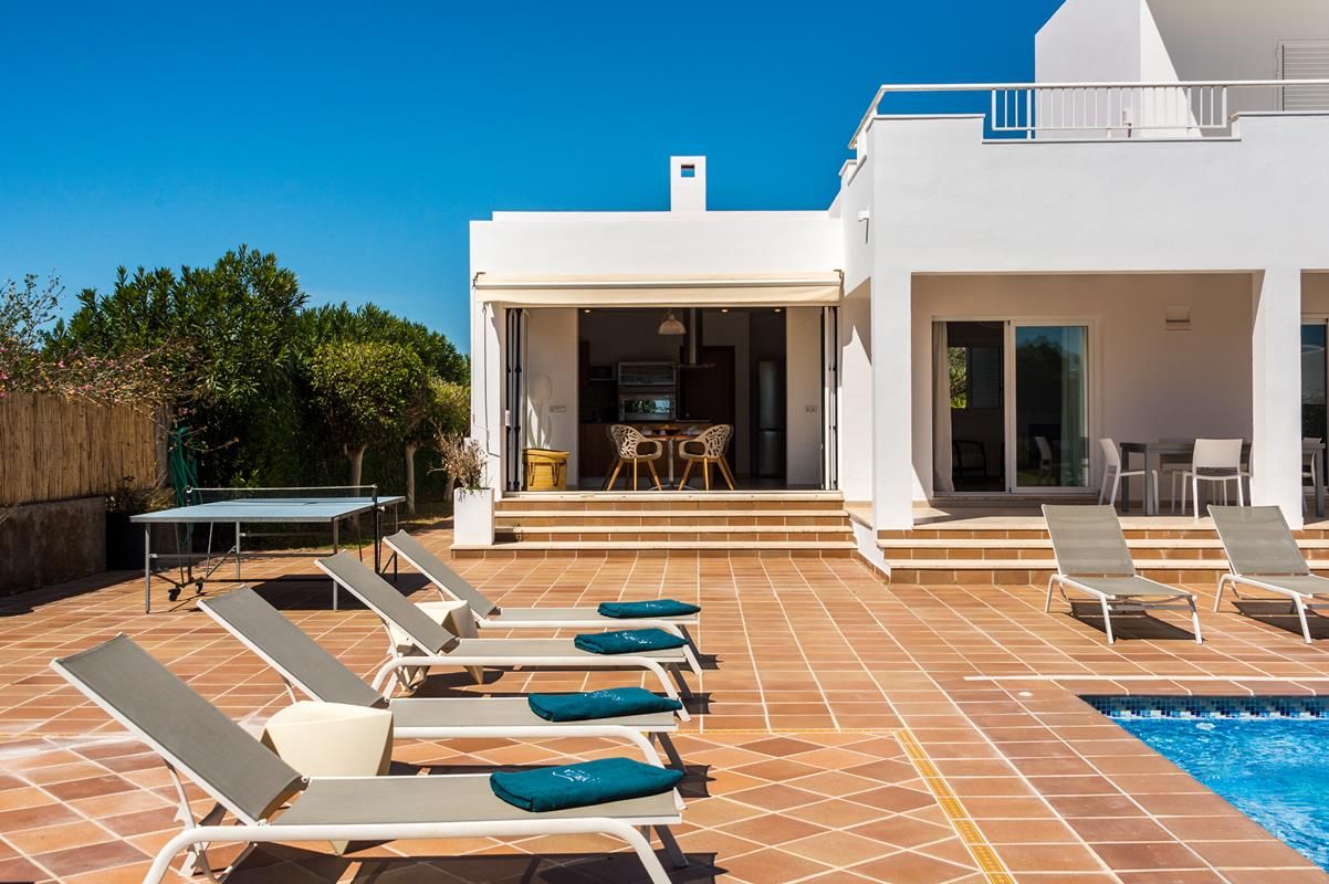 Villa comfortable à Jesus, Ibiza, Espagne avec piscine privée pour 8 personnes. La maison de vacances est située dans une région résidentielle, près de restaurants et bars et de supermarchés et à 3 km de la plage de Talamanca.