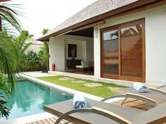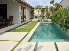 La villa dispose d'une chambre, d'une salle de bain et d'un toilette invité. L'hébergement offre une grande intimité, un merveilleux jardin gazonné avec gravier et arbres, ainsi qu'une charmante piscine. Son confort et la proximité de la plage, des zones commerçantes, des activités sportives et des lieux de divertissement en font une villa de luxe idéale pour passer vos vacances en Indonésie.