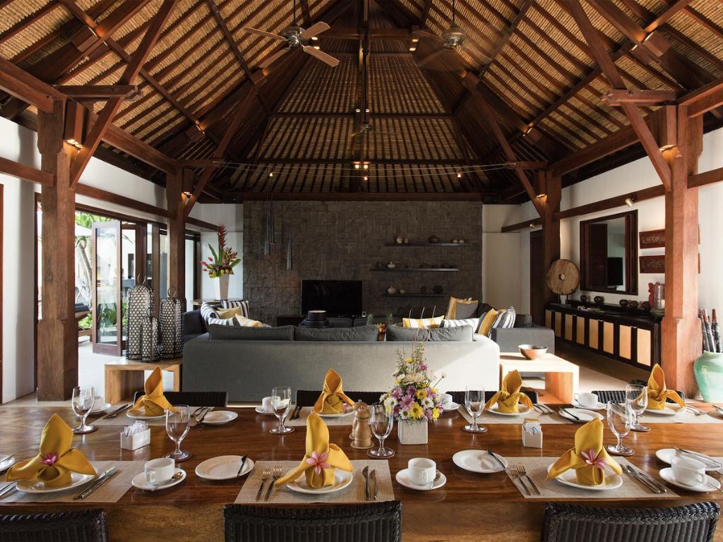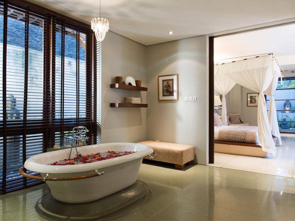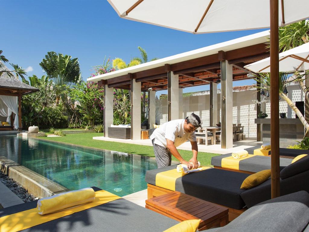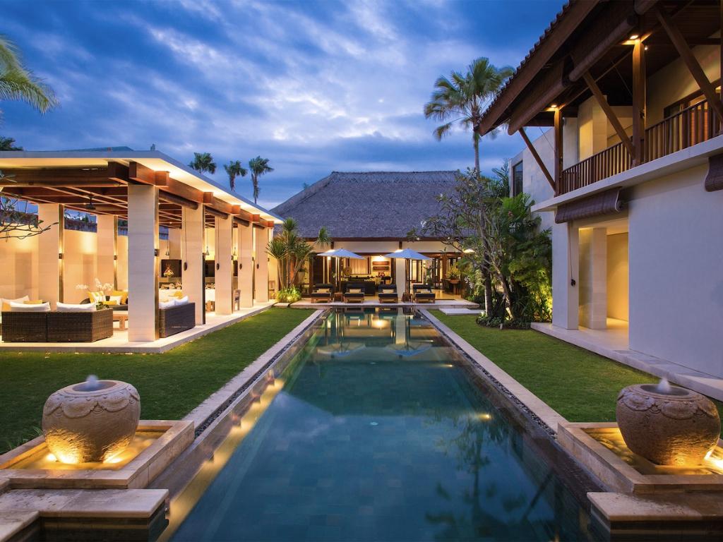 Grande villa de luxe avec piscine privée à Seminyak, Bali, Indonésie pour 12 personnes. La villa est située dans une région balnéaire et résidentielle, près de restaurants et bars, de magasins et de supermarchés et à 200 m de la plage de Kudeta, Seminyak. La villa a 6 chambres à coucher, 6 salles de bain et 1 toilette pour les invités, réparties sur 2 étages. Le logement offre beaucoup d'intimité, un jardin merveilleux avec pelouse et d´arbres et une piscine merveilleuse. Le comfort et le voisinage de la plage, d'endroits pour faire du shopping, d'activités sportives et d'endroits pour sortir rendent cette villa un logement idéal pour passer vos vacances avec votre famille ou vos amis.