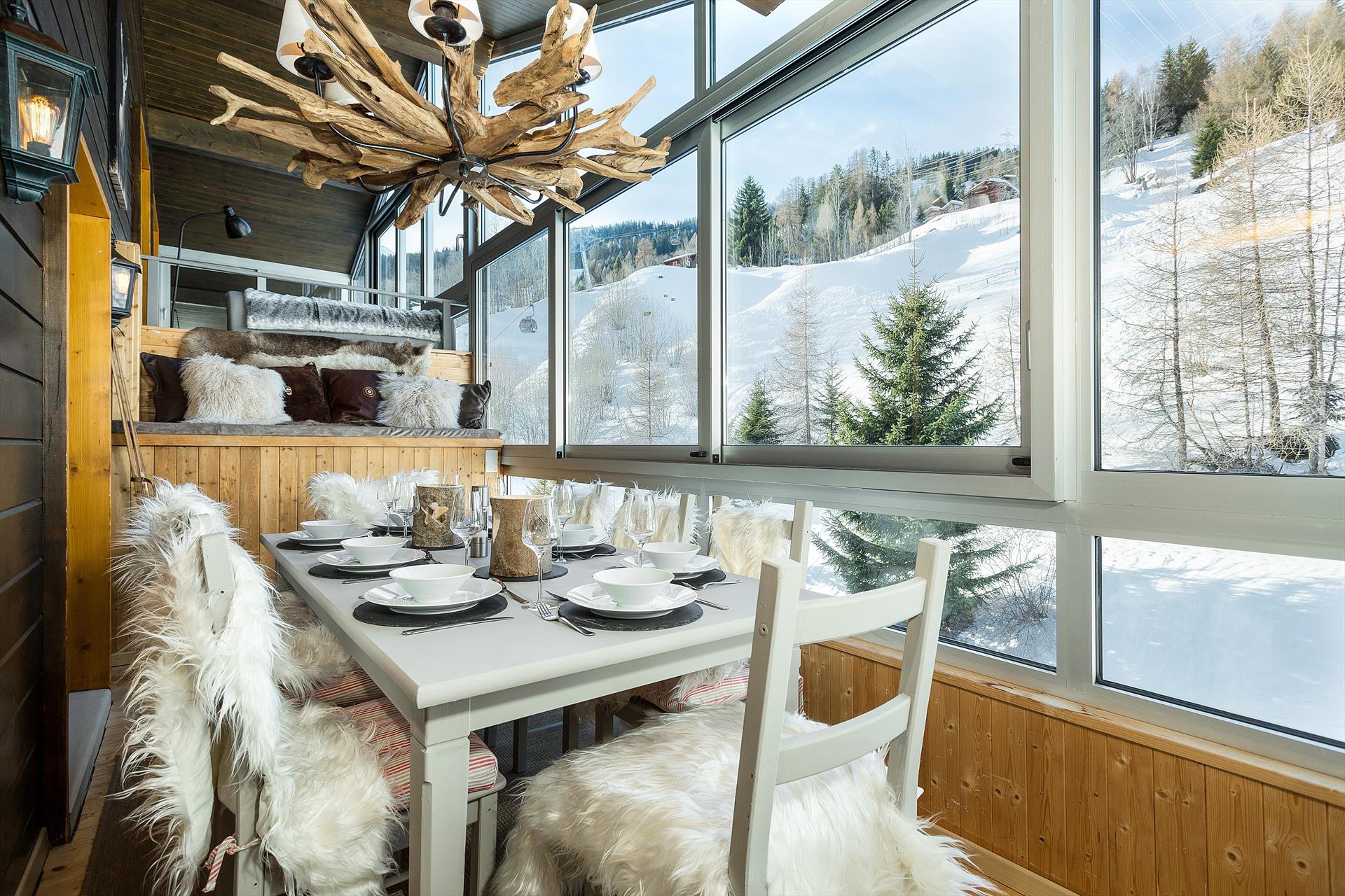 Entièrement rénovée en 2018, cette propriété de 4 chambres à coucher est idéale pour une famille élargie ou un groupe d'amis. Les vues imprenables depuis les balcons avant et arrière sont à couper le souffle, et le balcon orienté sud est entièrement vitré comprenant 2 sections : une zone de détente à l'étage accessible depuis deux des chambres avec des canapés et des chaises confortables ; et une zone inférieure qui fait une merveilleuse (et grande) deuxième salle à manger complète avec un lustre et des vues incroyables. La cuisine / salle à manger est parfaite pour échanger des histoires sur les défis de la journée autour d'une raclette ou d'une fondue traditionnelle de montagne, et le salon à haut plafond est un endroit idéal pour se rassembler autour de la cheminée ouverte et planifier les aventures de montagne du lendemain.
