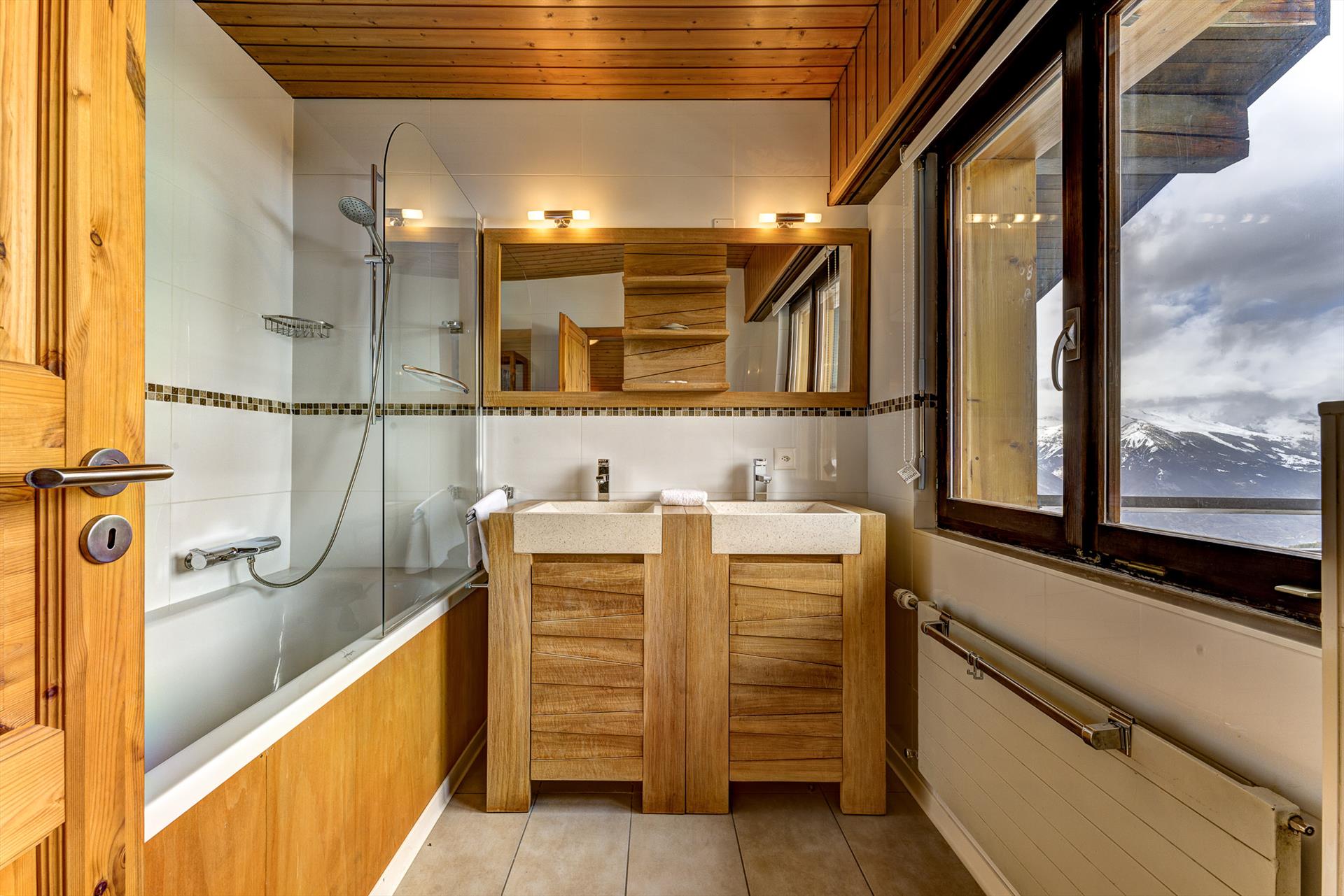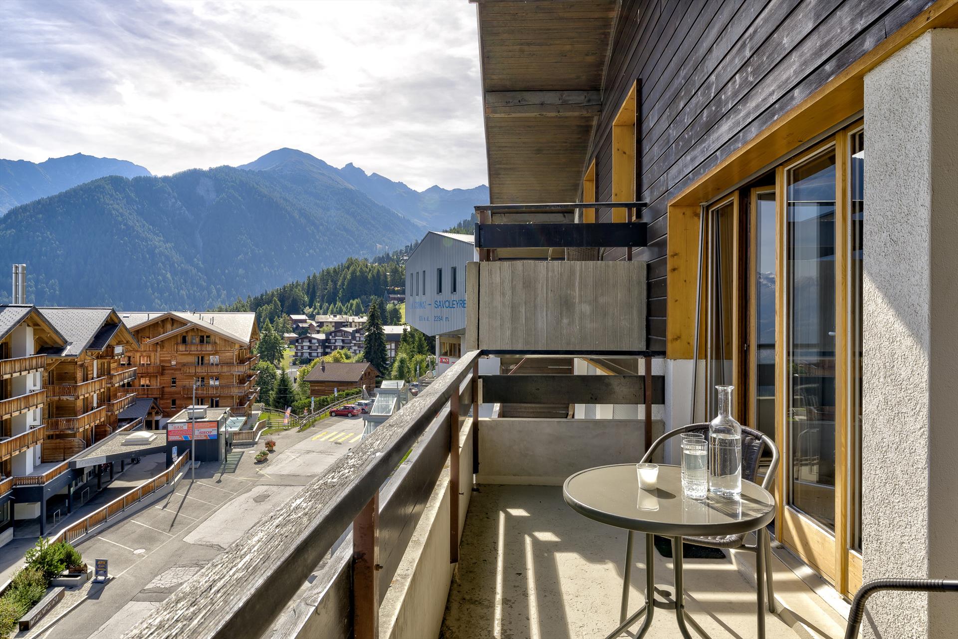 En rentrant chez soi après une journée en montagne, c'est un vrai plaisir de revenir à l'appartement à ski (ou en VTT) ! Une fois à l'intérieur, les vues depuis l'appartement du dernier étage sont époustouflantes. Par temps bleu, la vue s'étend sur 20 km, du fond de la vallée du Rhône jusqu'aux sommets du Haut de Cry et du Mont Gond. Les balcons fermés orientés au sud, à l'arrière, sont aménagés pour la détente et les repas et offrent une vue magnifique sur les télécabines qui glissent sur le flanc de la montagne. Bien qu'ils ne soient pas chauffés, les balcons se réchauffent rapidement au soleil par une après-midi d'été ensoleillée, et de petits radiateurs électriques sont fournis pour une utilisation occasionnelle en hiver. Si vous avez besoin de distraction, il y a une télévision à écran plat avec des chaînes internationales et un lecteur DVD.