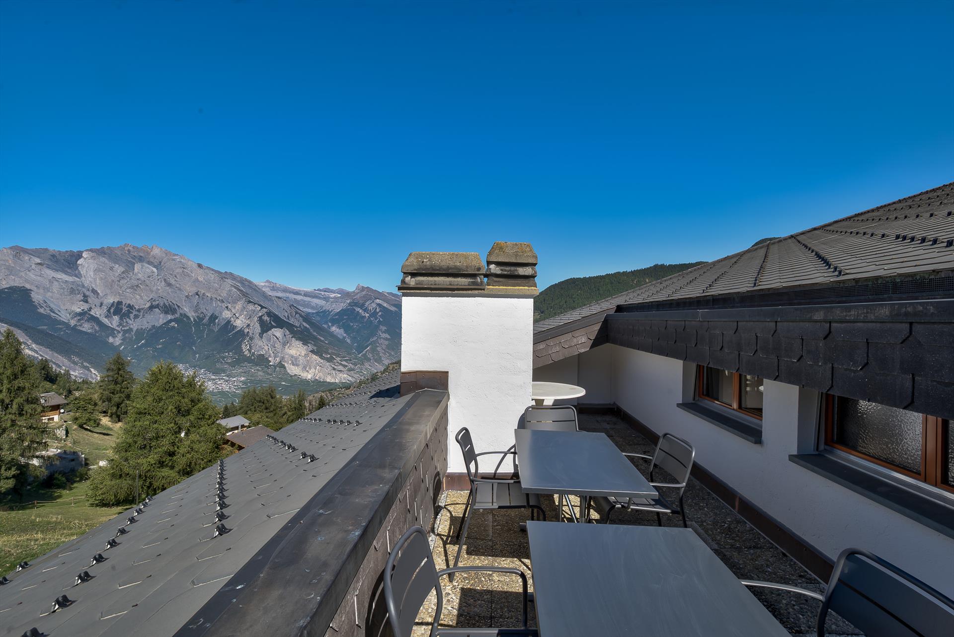 Cet appartement penthouse partiellement rénové, situé au centre de La Tzoumaz, se trouve à quelques pas du supermarché du village et de la principale remontée mécanique de La Tzoumaz. L'incroyable vue sur les montagnes depuis cet appartement situé au dernier étage et son balcon est ininterrompue et s'étend sur des dizaines de kilomètres à travers de superbes chaînes de montagnes. Il y a également une terrasse privée sur le toit avec un coin repas d'été.