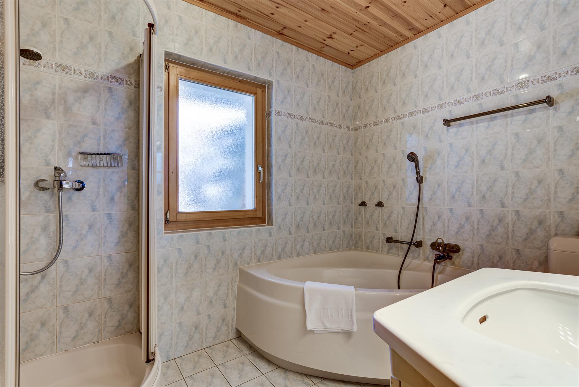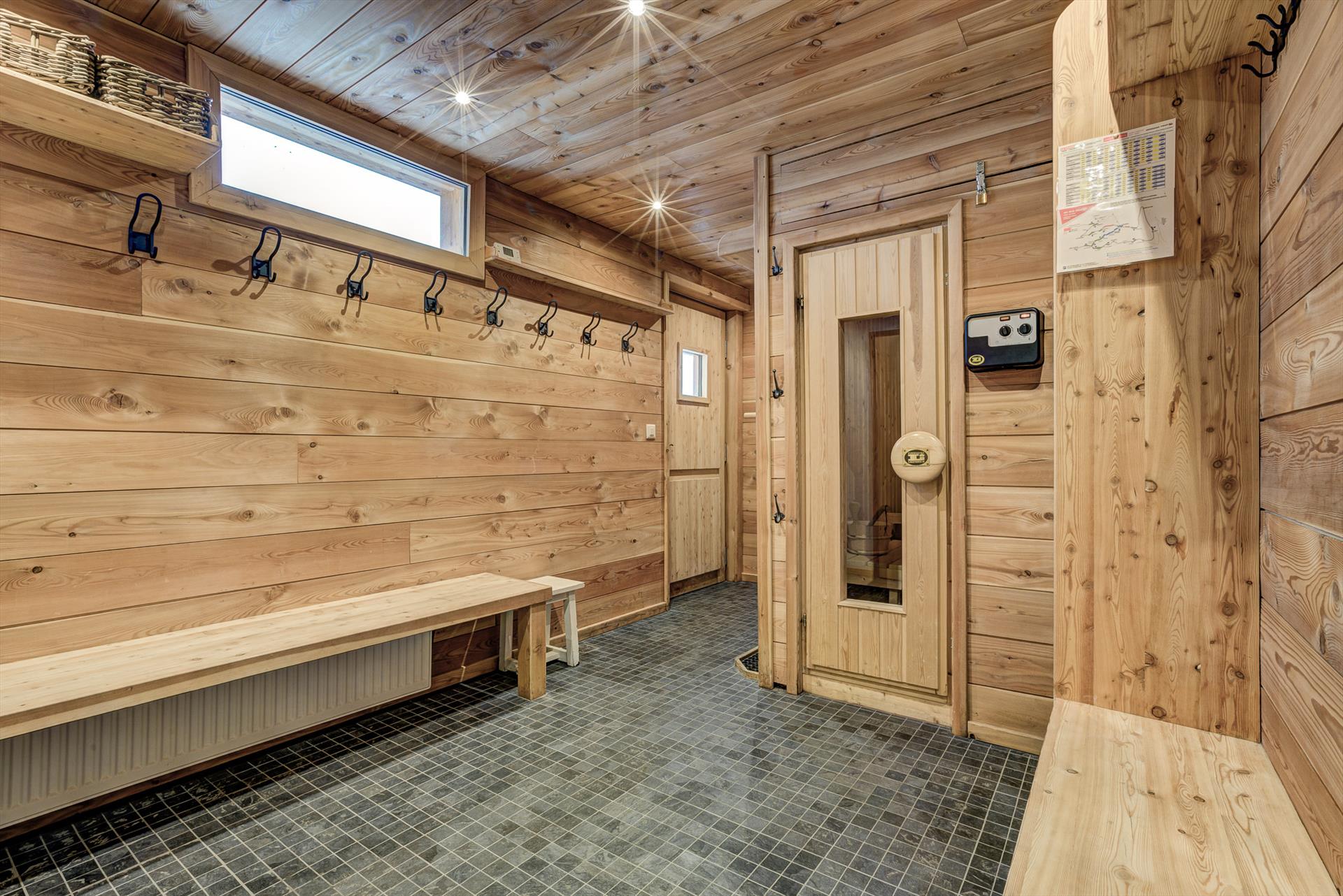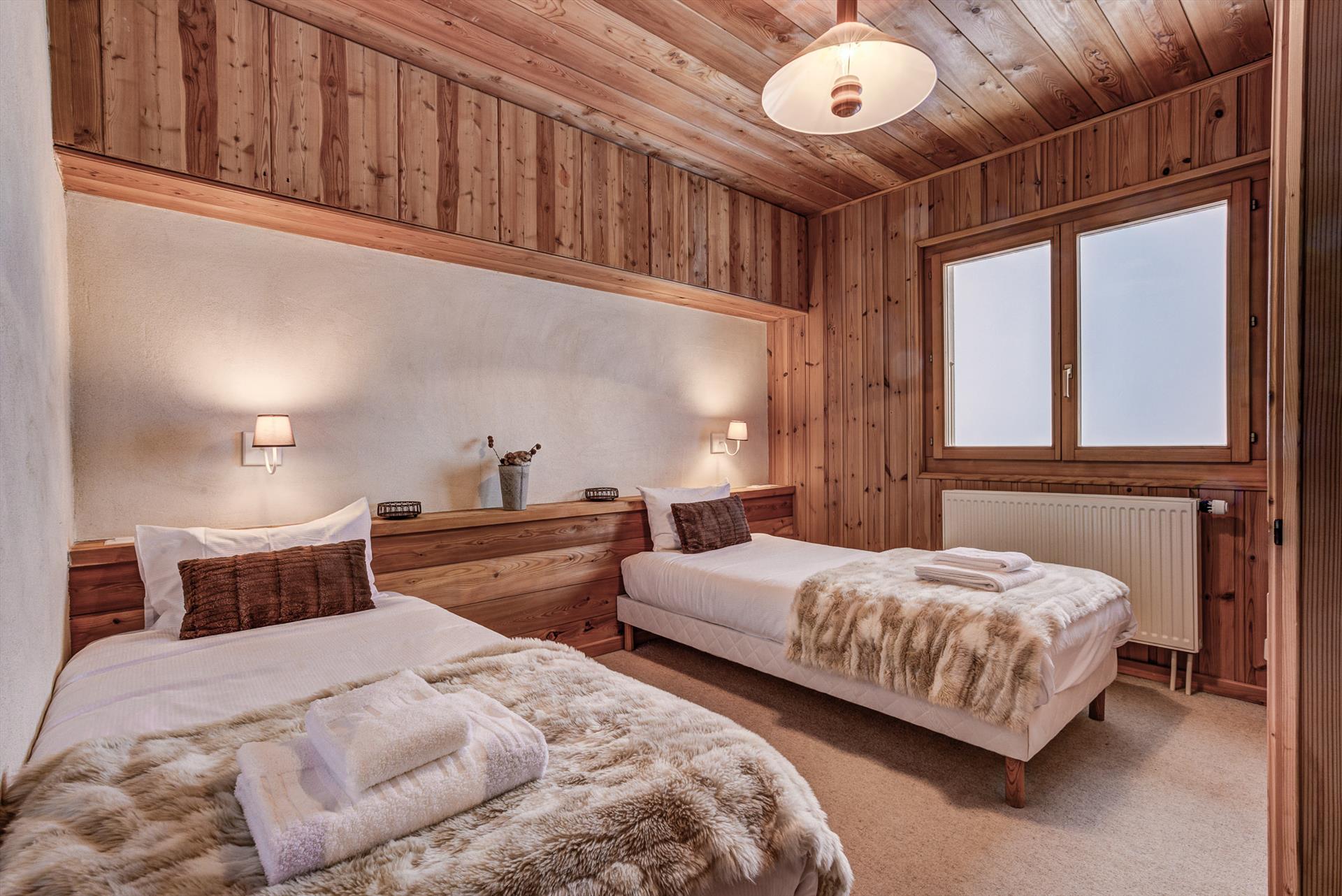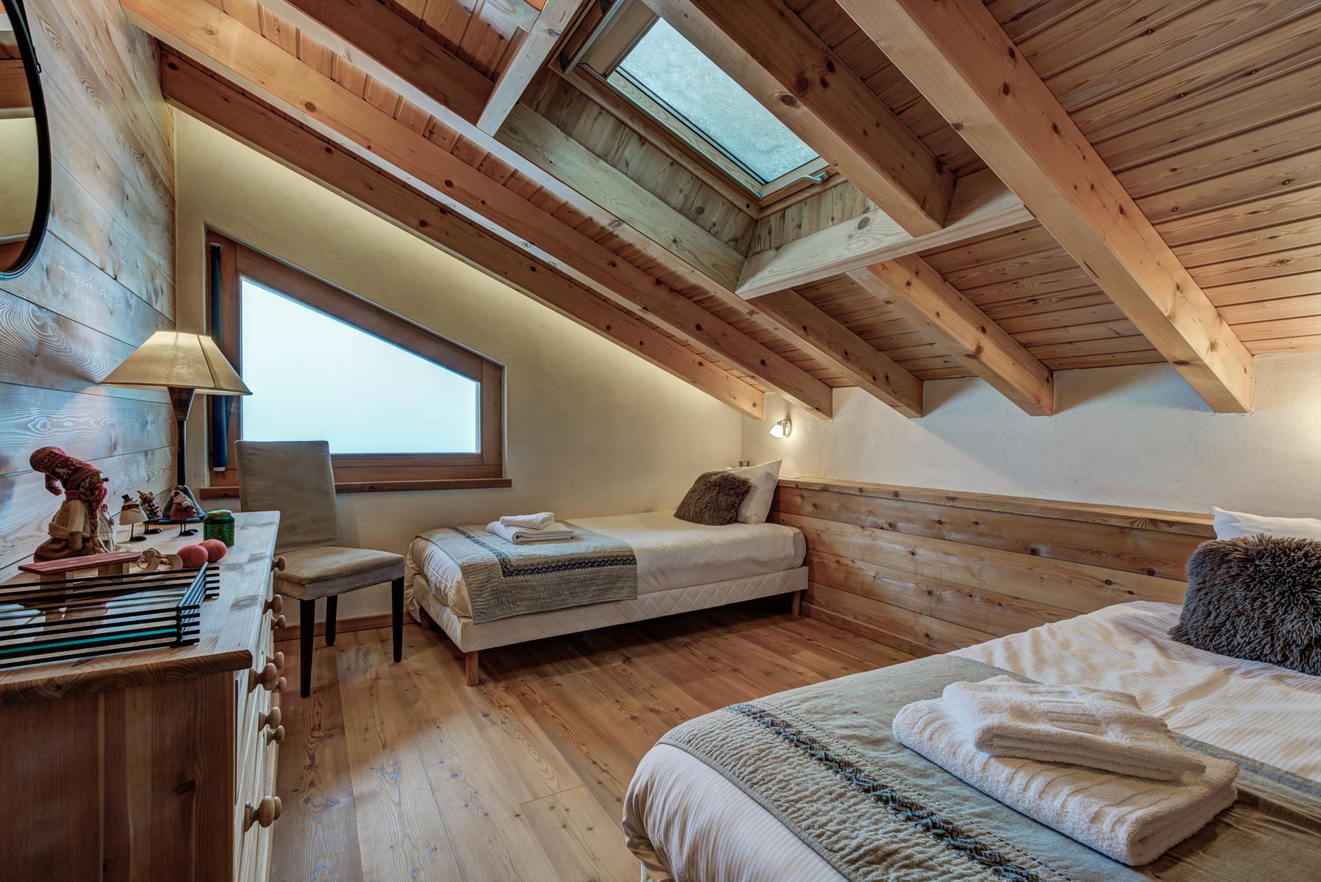 Il y a quatre chambres spacieuses et une cinquième chambre ouverte, de sorte que le chalet peut accueillir confortablement un total de 10 personnes. Au rez-de-chaussée, l'entrée se fait par le local à skis et le sauna. On y trouve une chambre double avec une grande salle de bain attenante (avec baignoire d'angle, douche, lavabo et WC), une chambre à deux lits et une salle de douche séparée (équipée d'une double douche à effet pluie, d'un lavabo et de WC).