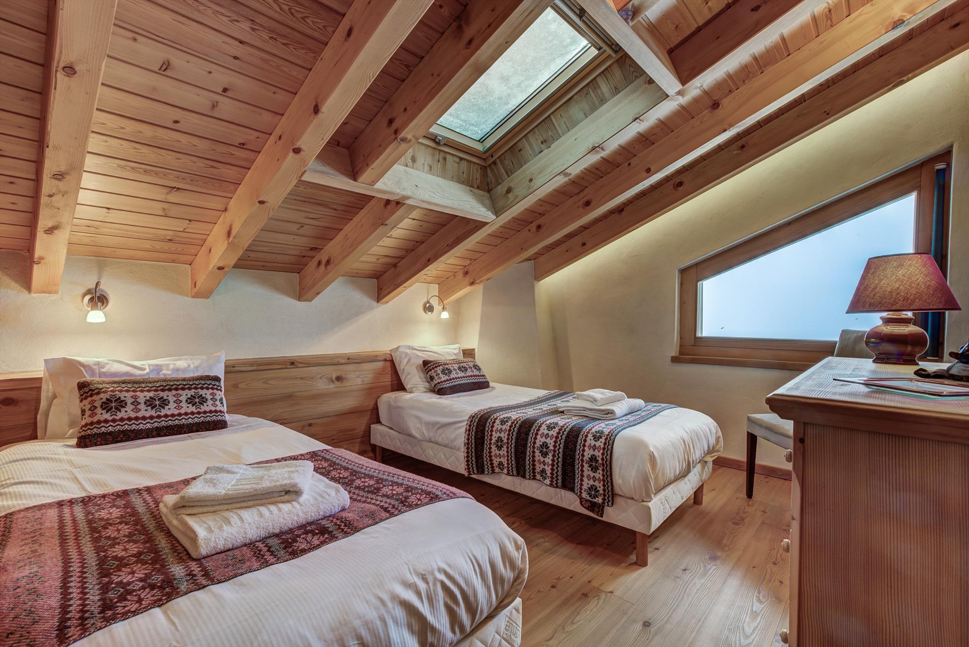 Au dernier étage, il y a deux chambres à deux lits, ouvertes sur les poutres du toit et équipées d'une armoire, et il y a un espace ouvert supplémentaire en haut de l'escalier avec un lit double, une télévision et un canapé confortable.