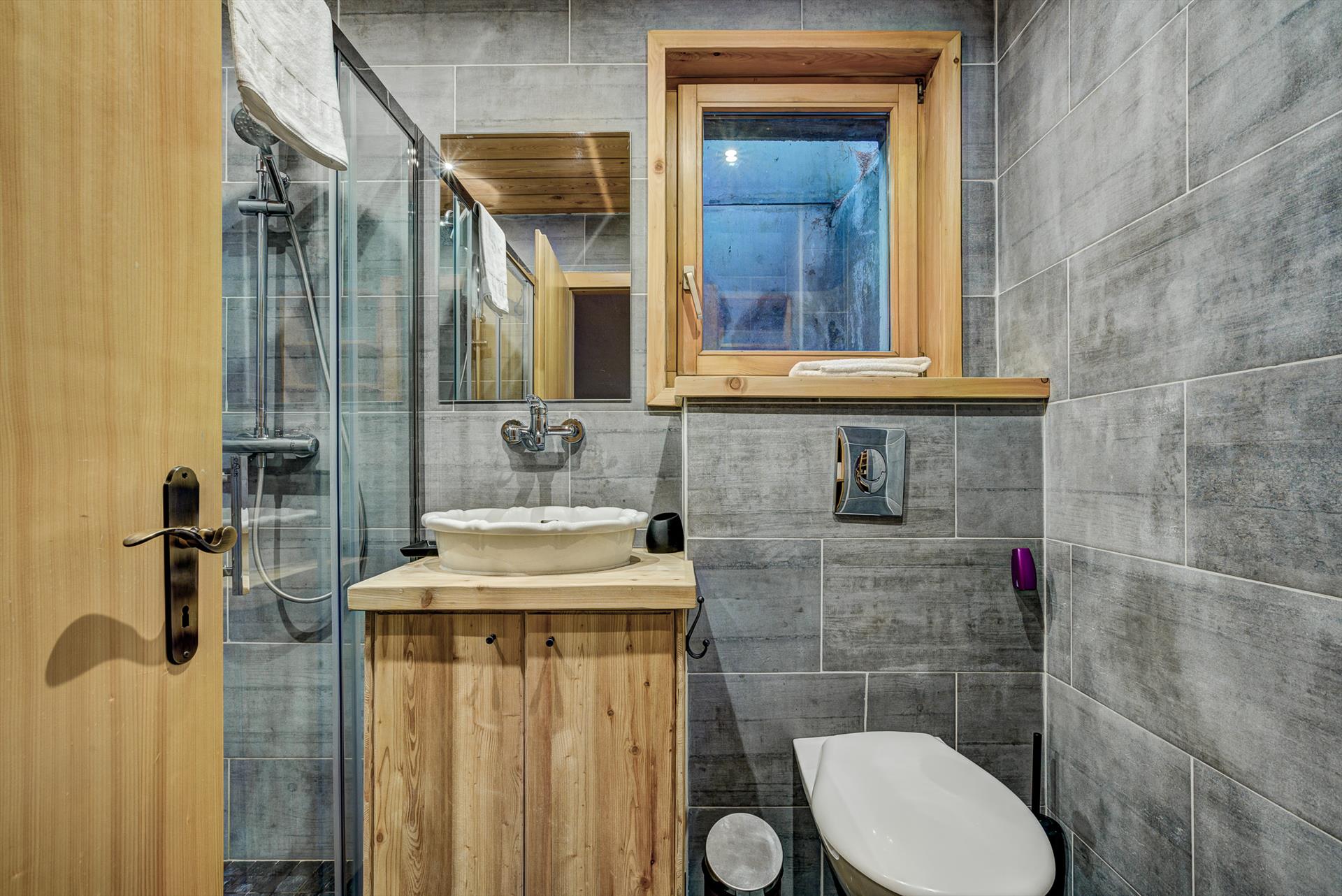 Au rez-de-chaussée, il y a une salle de bains (avec douche, lavabo et WC).