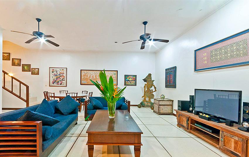 - sala de estar/jantar com televisão, leitor de DVD, ipod docking station, sofá cama e kipas langit-langit