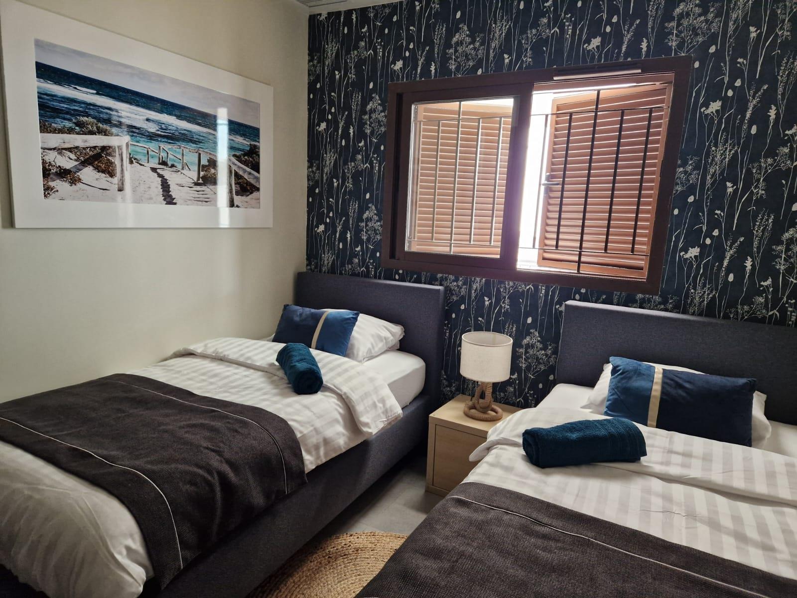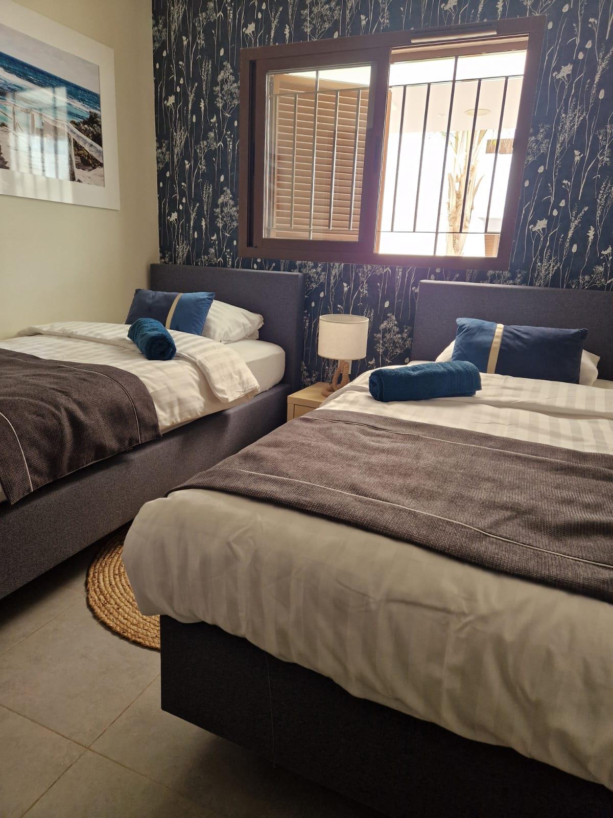 - kamar tidur dengan pendingin udara dan 2 tempat tidur tunggal (berukuran 200 x 80 cm)