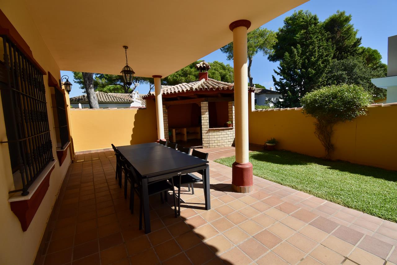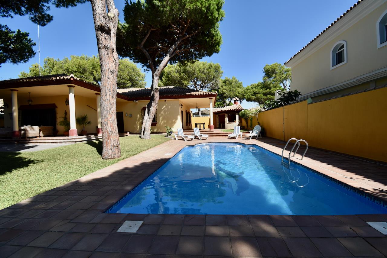 Villa dengan kolam renang pribadi di La Barrosa, Costa de la Luz, Spanyol untuk 8 orang. Rumah ini terletak di area resor pantai, dekat dengan supermarket dan lapangan tenis serta 1 km dari pantai La Barrosa.