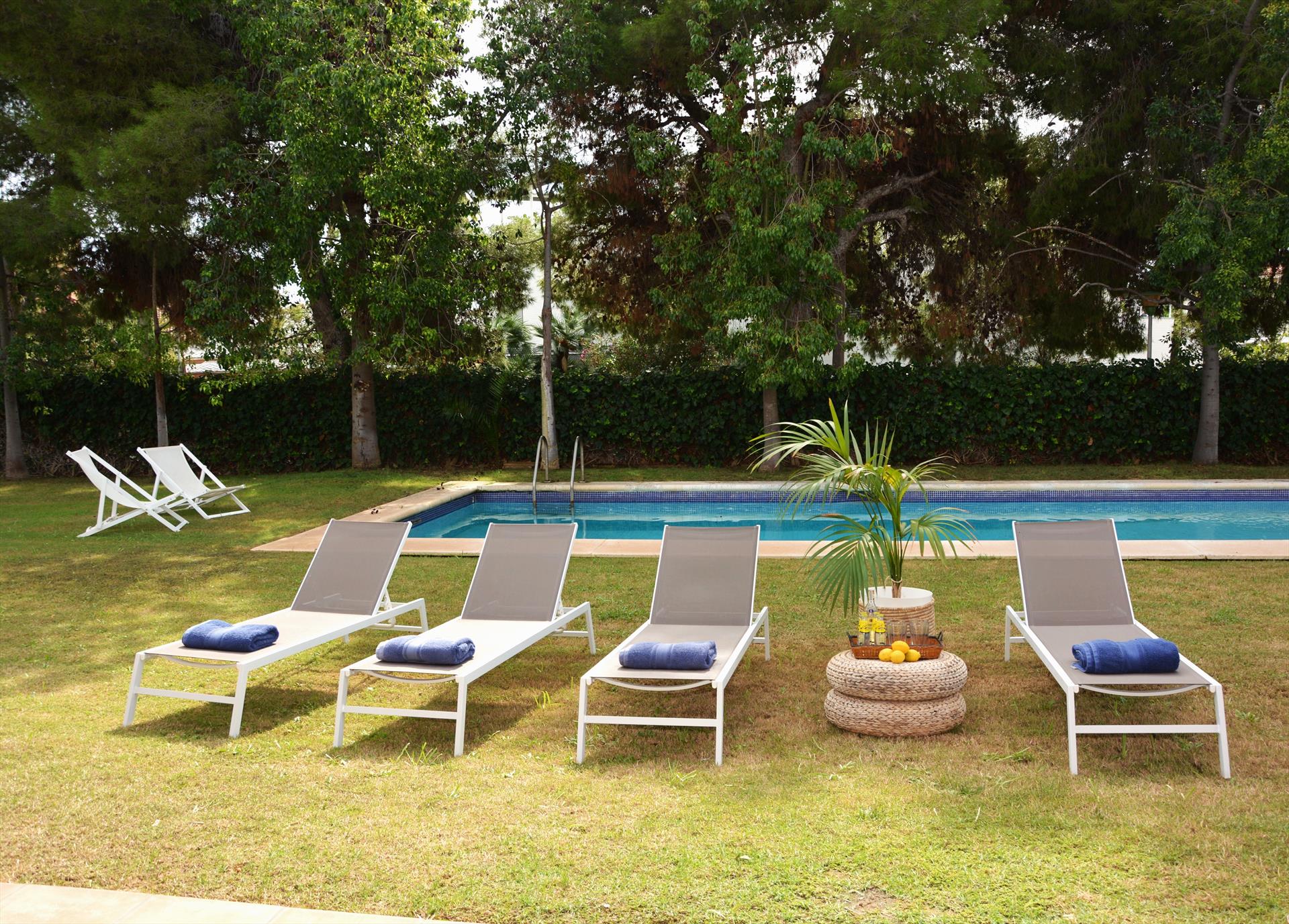 Vila mewah ini memiliki 7 kamar tidur, 6 kamar mandi, dan 1 toilet tamu, yang tersebar di 2 tingkat. Akomodasi ini menawarkan banyak privasi, taman berumput yang indah dengan pepohonan, kolam renang yang menyenangkan, dan pemandangan indah pantai, laut, serta kota. Kenyamanannya dan kedekatannya dengan tempat belanja menjadikan vila mewah ini sebagai tempat yang ideal untuk menghabiskan liburan di Spanyol bersama keluarga atau teman-teman, bahkan hewan peliharaan Anda.
