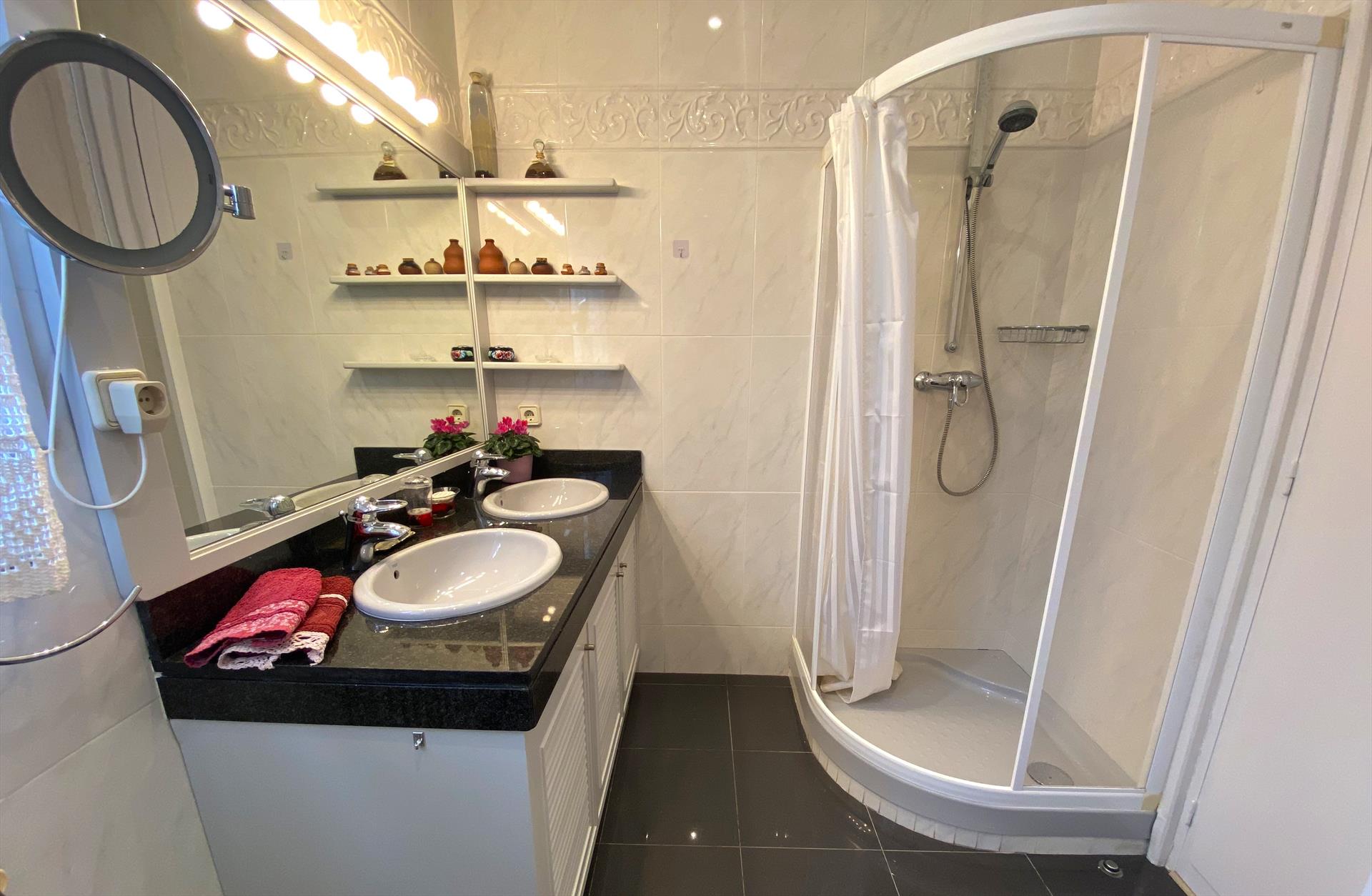 • 2 kamar mandi masing-masing dengan wastafel tunggal, shower, bidet, dan toilet