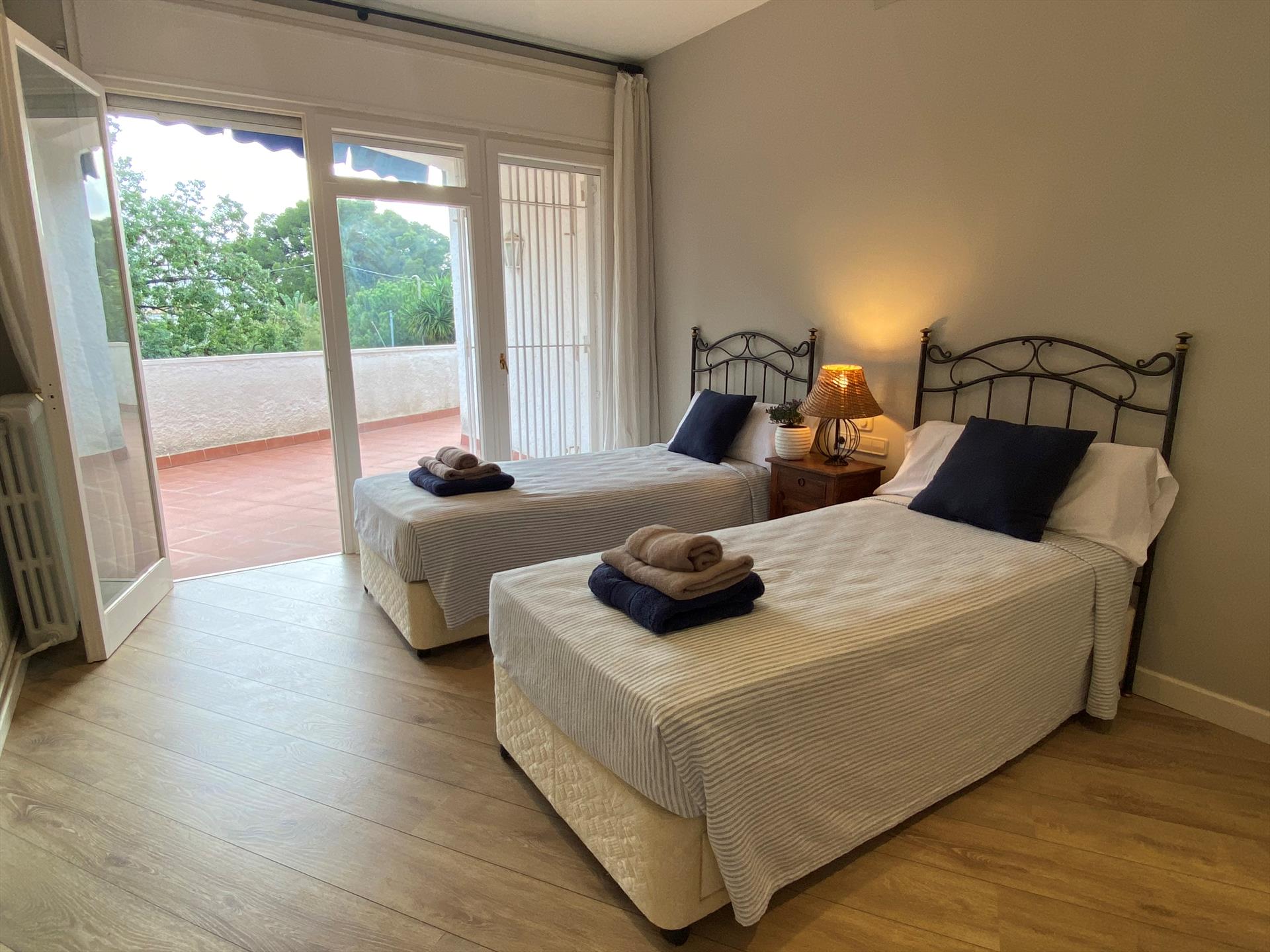 • 2 kamar tidur dengan pendingin udara, masing-masing dengan 2 tempat tidur single dan kipas