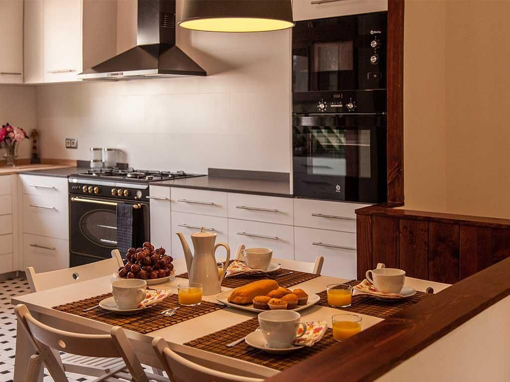 - dapur dengan kompor gas, oven listrik, microwave, mesin pencuci piring, lemari es-freezer, mesin kopi, ketel listrik, mixer, pemanggang roti, juicer, dan dispenser air (air panas dan dingin)