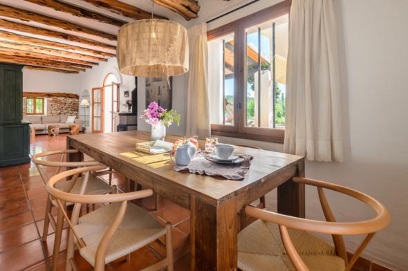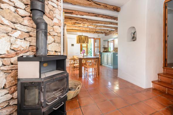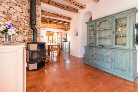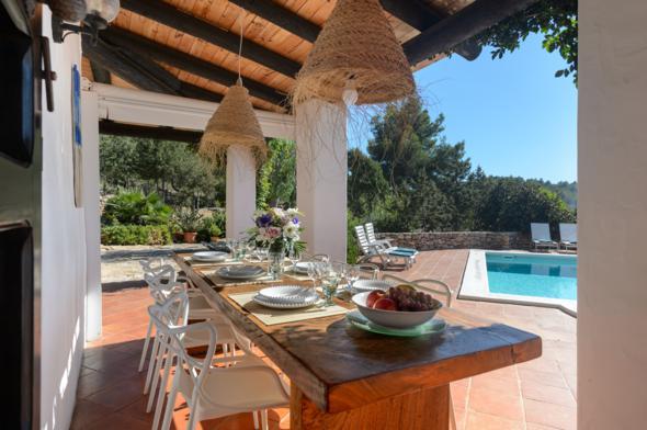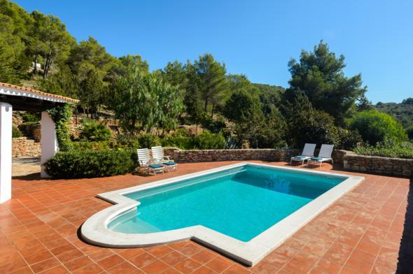Villa di San Carlos, Ibiza, Spain dengan kolam renang pribadi untuk 5 orang. Rumah terletak di kawasan pedesaan dan berkayu, dekat dengan toko dan supermarket dan pada 500 m dari sebuah pantai dari San Carlos.
