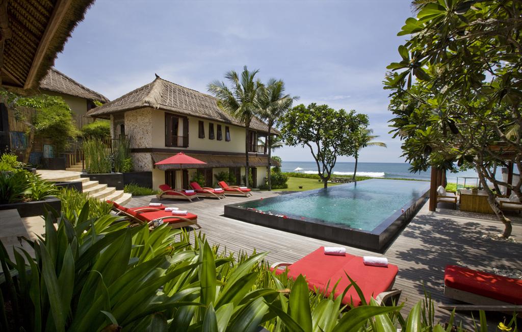 Stor och lyxvilla med privat bassäng i Canggu, Bali, Indonesia för 8 personer. Villan ligger i ett lantligt strandområde, nära tennisbanan, 25 m från pantai lima -stranden och 0,025 km från Indian Ocean.