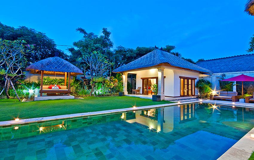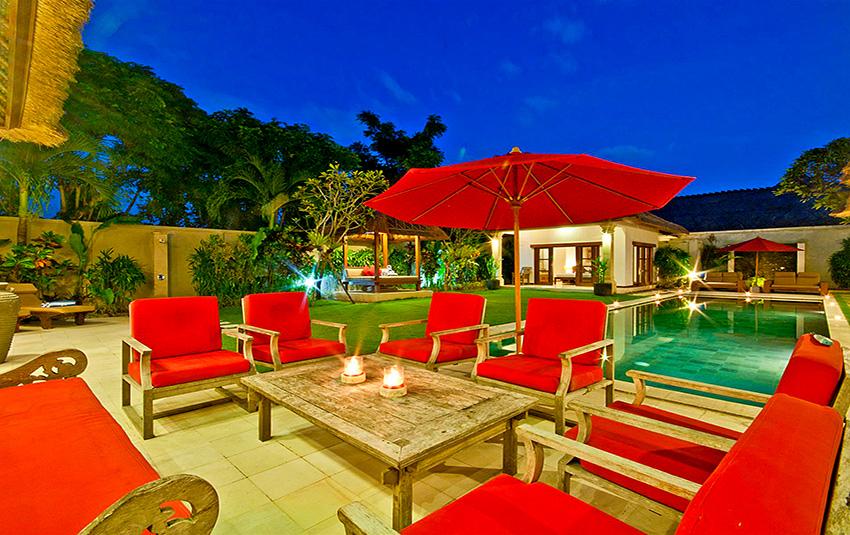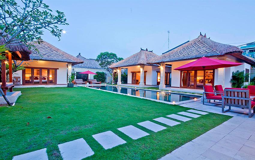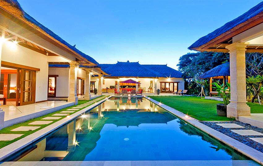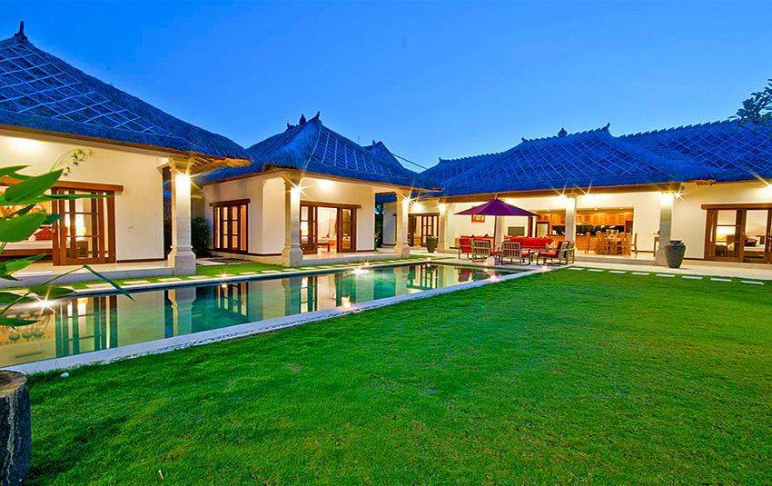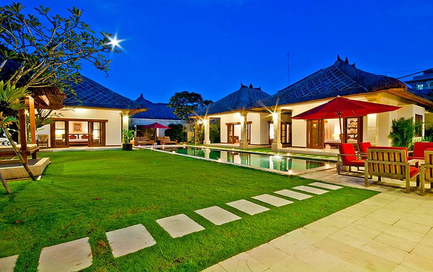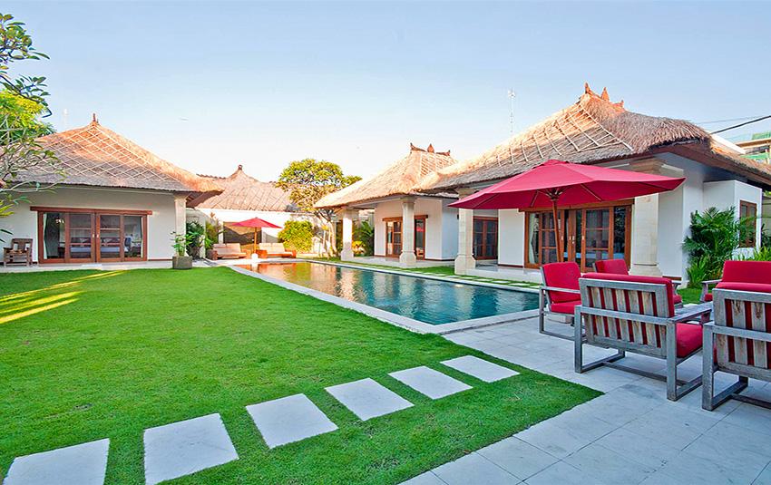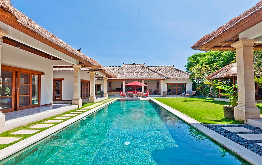 Stor och lyxigt villa med privat pool i Seminyak, Bali, Indonesia för 10 personer. Villan ligger i ett residentiellt strandområde, nära restauranger och barer, affärer och supermarket och 500 m från Gado Gado-stranden. Villan har 5 sovrum och 5 badrum. Boendet erbjuder total ostördhet, en underbar trädgård med gräsmattan och träd och en underbar pool. Komforten och närheten till stranden, möjligheter att handla, sportfaciliteter, nöjesfaciliteter och ställen att gå ut gör villan perfekt för semestern med familj eller husdjur.