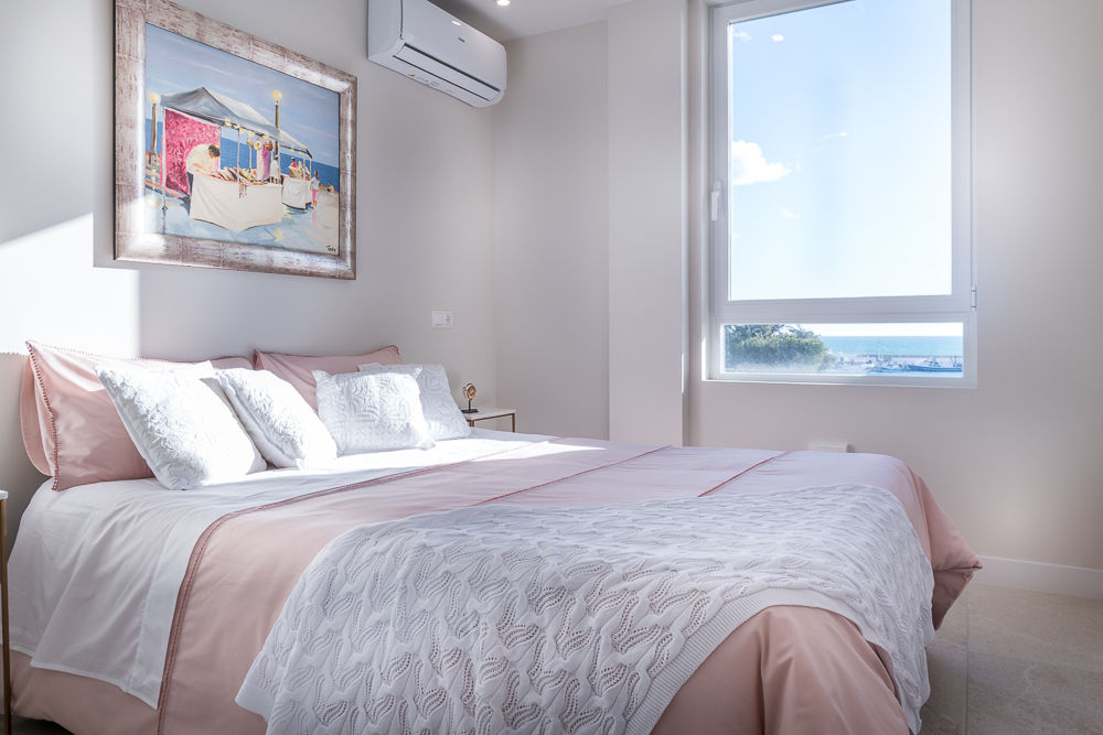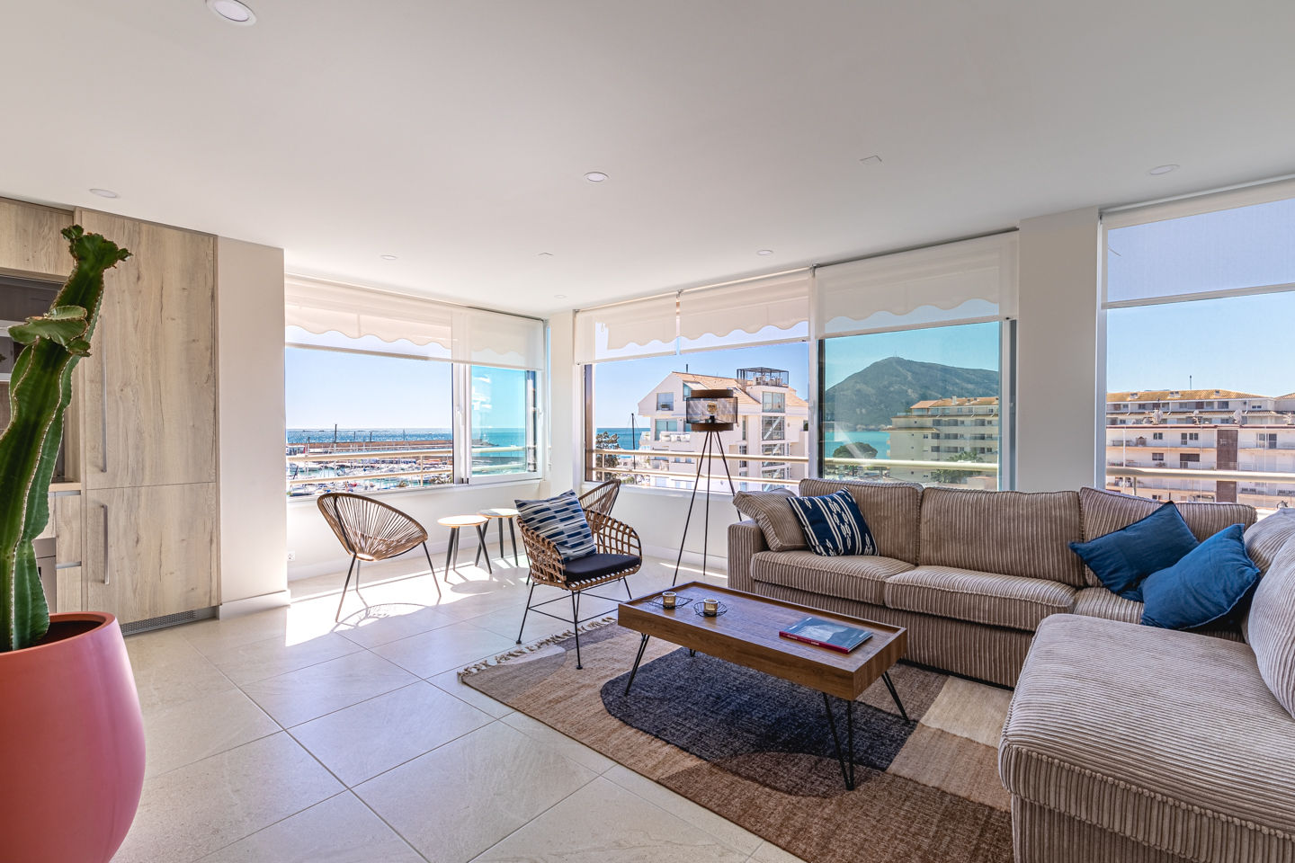Lägenheten har 3 sovrum och 2 badrum. Boendet erbjuder avskildhet, en gemensam gräsmatta, underbara vyer över havet och hamnen, samt vackra utsikter över bukten, stranden och bergen. Dess komfort och närhet till stranden, shoppingområden, sportaktiviteter, nöjesanläggningar, nattliv, sevärdheter och kultur gör detta till en ideal lägenhet för att tillbringa semestern i Spanien med familj eller vänner.