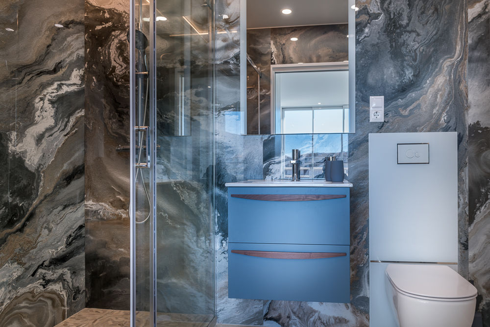 - öppen kök med induktionsspis, elektrisk ugn, mikrovågsugn, diskmaskin, kyl-frys, kaffemaskin, elektrisk vattenkokare, mixer, brödrost och juicepress
