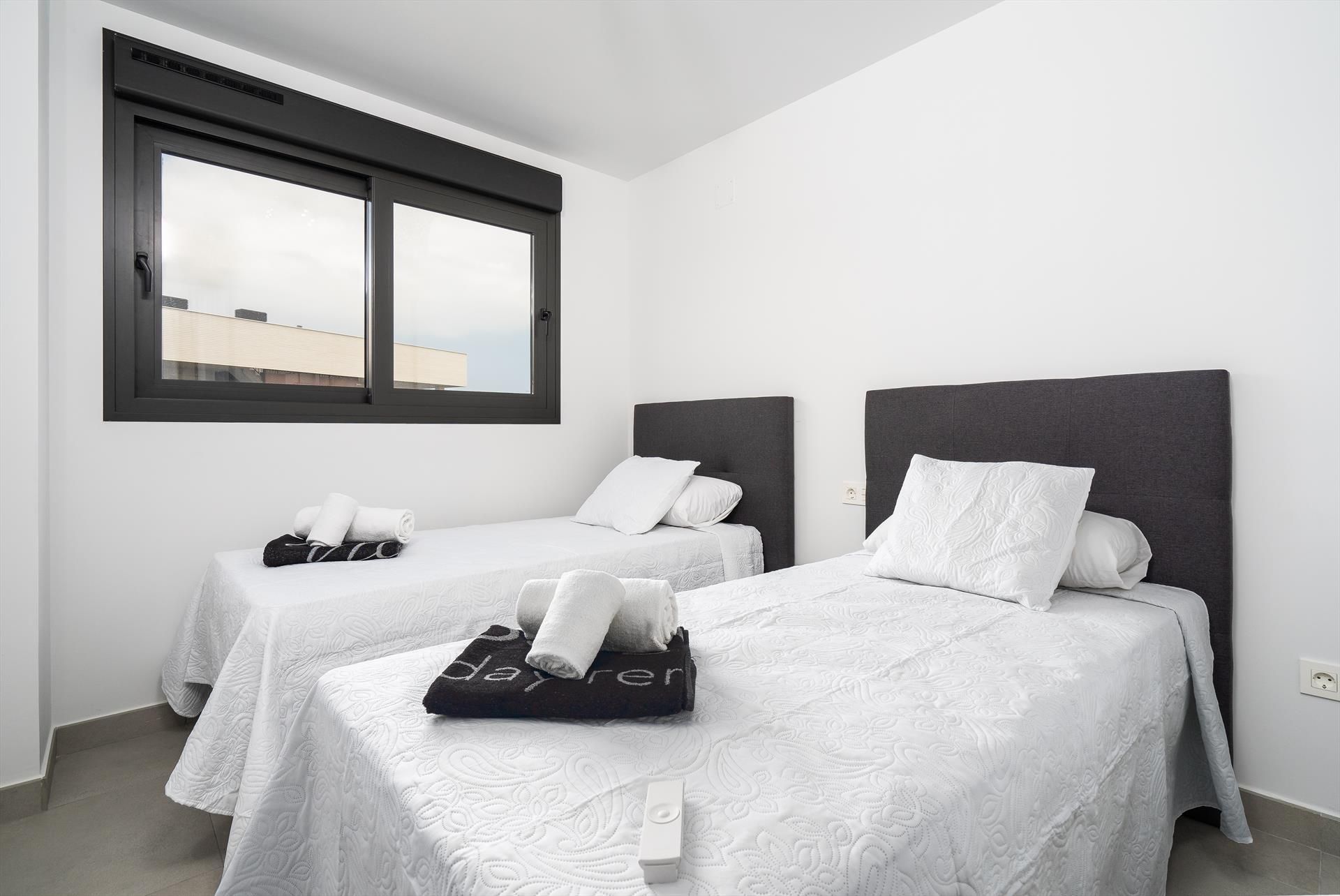 Lägenheten har 3 sovrum och 2 badrum. Boendet erbjuder en gräsmatta gemensam trädgård med grus och utsikt över dalen. Dess komfort och närhet till stranden, shoppingmöjligheter, sportaktiviteter, nöjesanläggningar, uteställen, sevärdheter och kultur gör detta till en utmärkt lägenhet för att tillbringa din semester i Spanien med familj eller vänner.