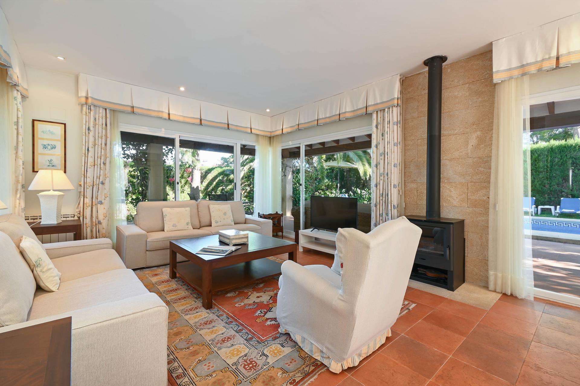 Villan har 4 sovrum och 3 badrum, fördelat över 2 våningar. Boendet erbjuder mycket avskildhet, en vacker gräsmatteträdgård med grus och träd samt en underbar pool. Dess bekvämlighet och närhet till stranden, shoppingmöjligheter, sportaktiviteter, nöjesfaciliteter, utflyktsmål och kultur gör detta till en idealisk villa för att tillbringa semestern i Spanien med familj eller vänner och även dina husdjur.