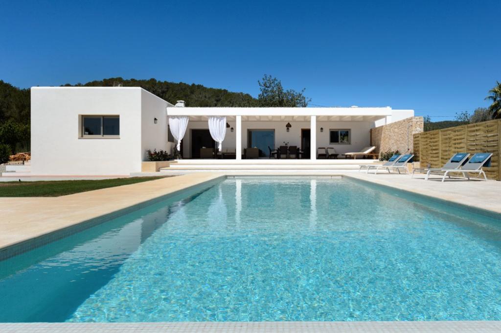 Komfortabel villa i Santa Gertrudis, Ibiza, Spanien med privat bassäng för 6 personer. Huset ligger i ett kuperat och lantligt område.