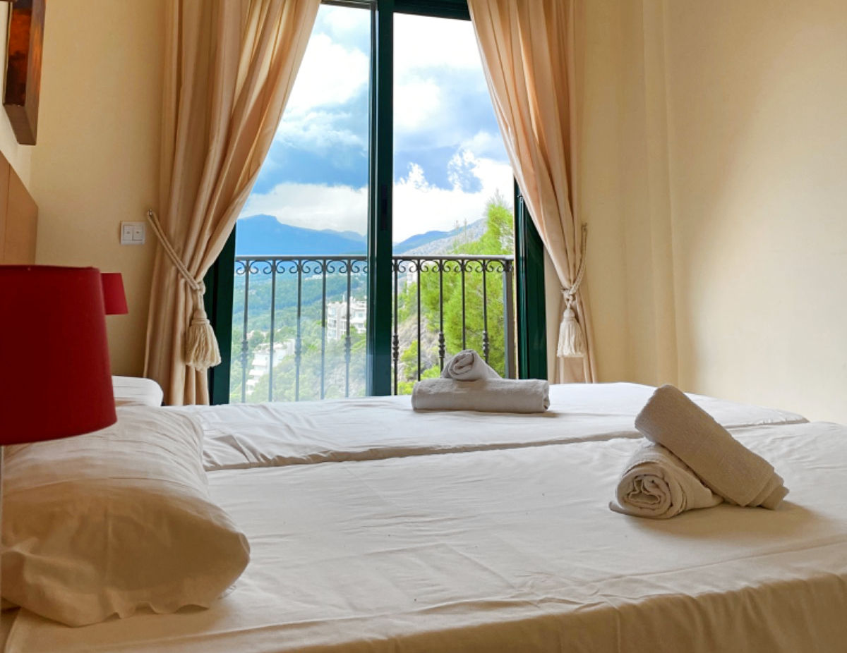 Het appartement beschikt over 3 slaapkamers, 2 badkamers en 1 gasten toilet, verspreid over 2 niveaus. De accommodatie biedt privacy, een gemeenschappelijke tuin met gras, grind en bomen, prachtige uitzichten op de zee, de vallei en de bergen, en een prachtig uitzicht op de baai. Het comfort en de nabijheid van het strand, winkels, sportactiviteiten, nachtleven, bezienswaardigheden en cultuur maken dit een ideaal appartement om uw vakantie in Spanje door te brengen met familie of vrienden.