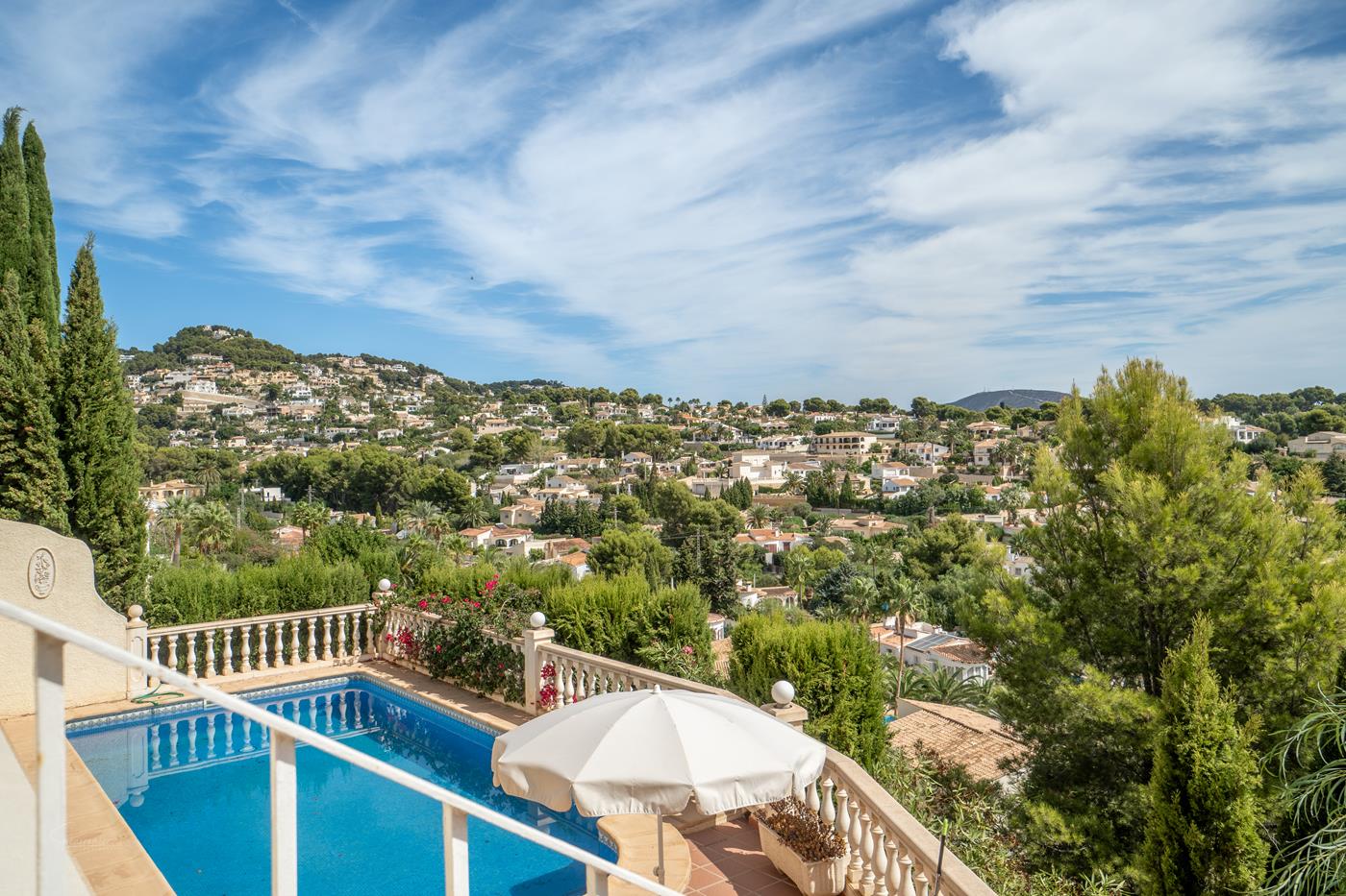 Mooie en comfortabele villa in Benissa, Costa Blanca, Spanje met verwarmd zwembad voor 8 personen. De vakantievilla ligt in een residentiële kustomgeving, op 2 km van het strand van Cala Baladrar en op 5 km van Moraira. De villa heeft 4 slaapkamers en 4 badkamers, verdeeld over 2 woonlagen. De accommodatie biedt veel privacy, een mooie tuin met gravel en bomen, een mooi verwarmd zwembad en prachtig uitzicht op het platteland. Het comfort en de nabijheid van het strand, gelegenheden om te winkelen, mogelijkheden om te sporten, amusement en uitgaansgelegenheden maken dit een geschikte villa voor uw vakantie in Spanje met familie of vrienden.