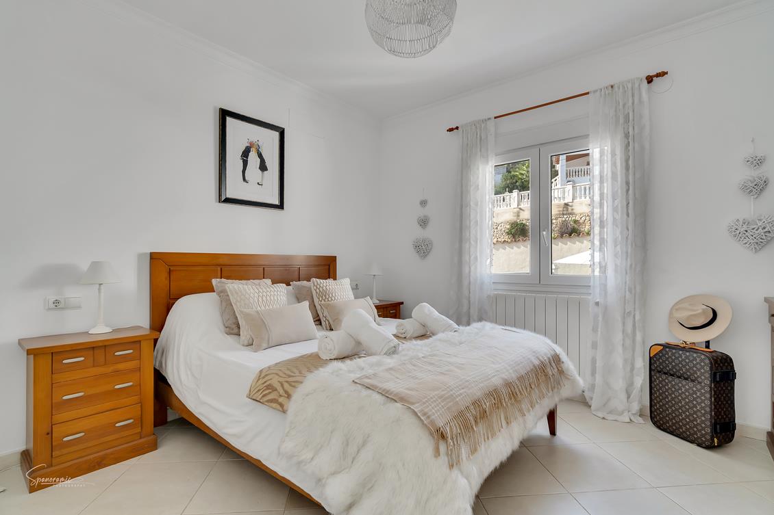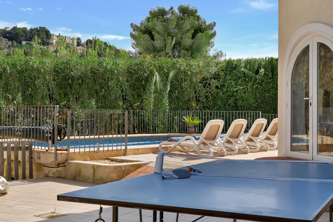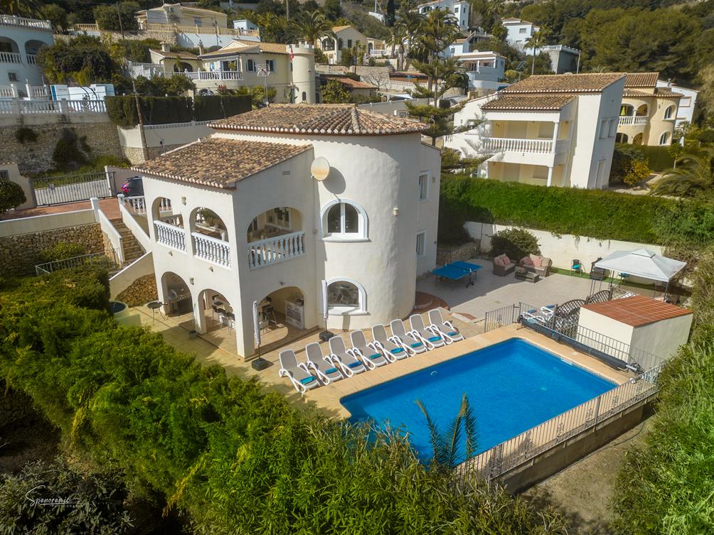 Grote en luxe villa in Benissa, Costa Blanca, Spanje met verwarmd zwembad voor 10 personen. De villa ligt in een heuvelachtige en stedelijke omgeving, op 3 km van het strand van Cala Baladrar en op 6 km van Moraira. De villa heeft 5 slaapkamers en 3 badkamers, verdeeld over 2 woonlagen. Het comfort en de nabijheid van het strand, mogelijkheden om te sporten en uitgaansgelegenheden maken dit een ideale luxe villa voor uw vakantie in Spanje met familie of vrienden.