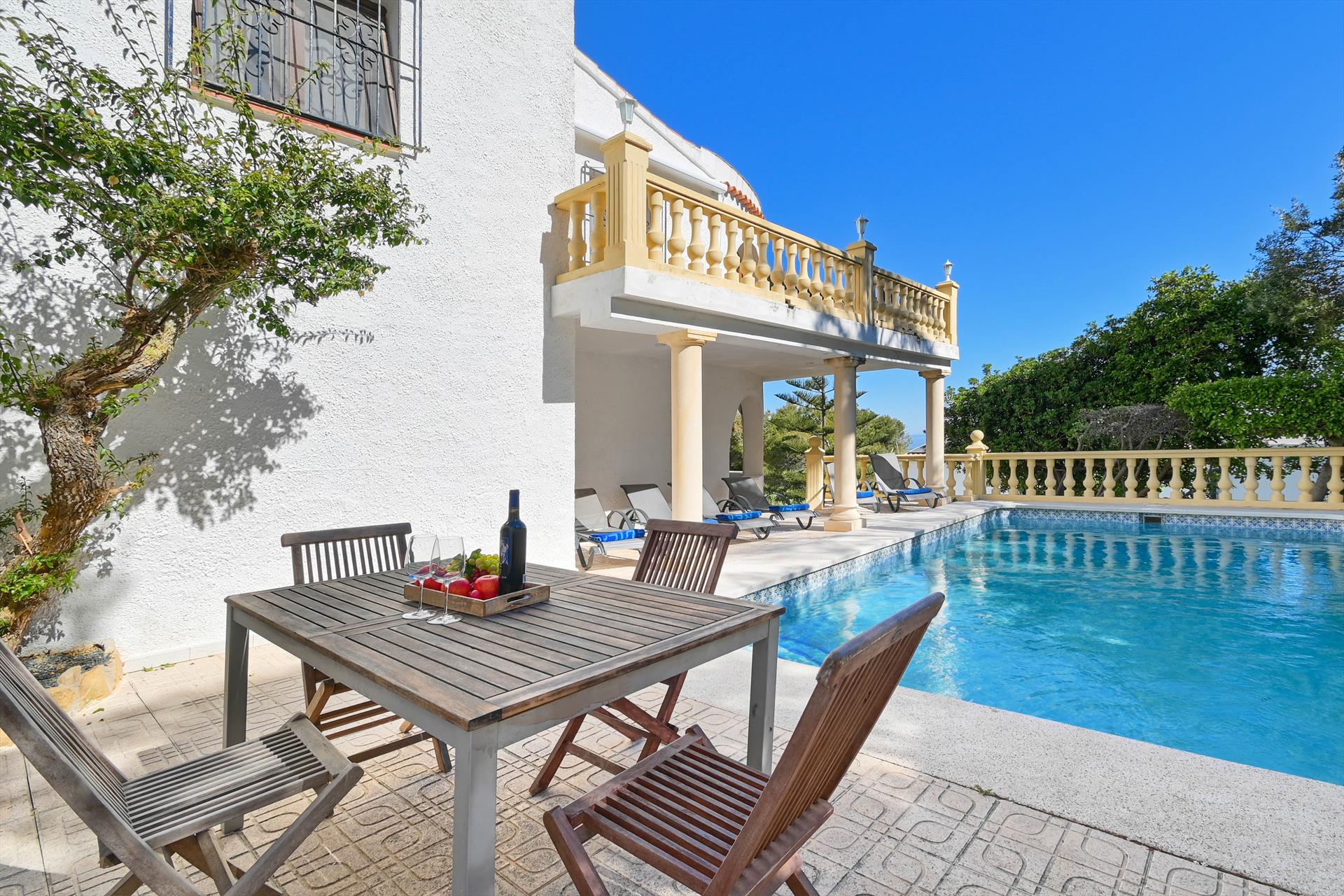 De villa beschikt over 4 slaapkamers en 2 badkamers, verdeeld over 2 verdiepingen. De accommodatie biedt privacy, een gazon met bomen, een schitterend zwembad en mooi uitzicht op de zee. Het comfort en de nabijheid van het strand, winkels, sportactiviteiten, entertainment, bezienswaardigheden en cultuur maken deze villa tot een uitstekende keuze om uw vakantie in Spanje met familie of vrienden door te brengen.