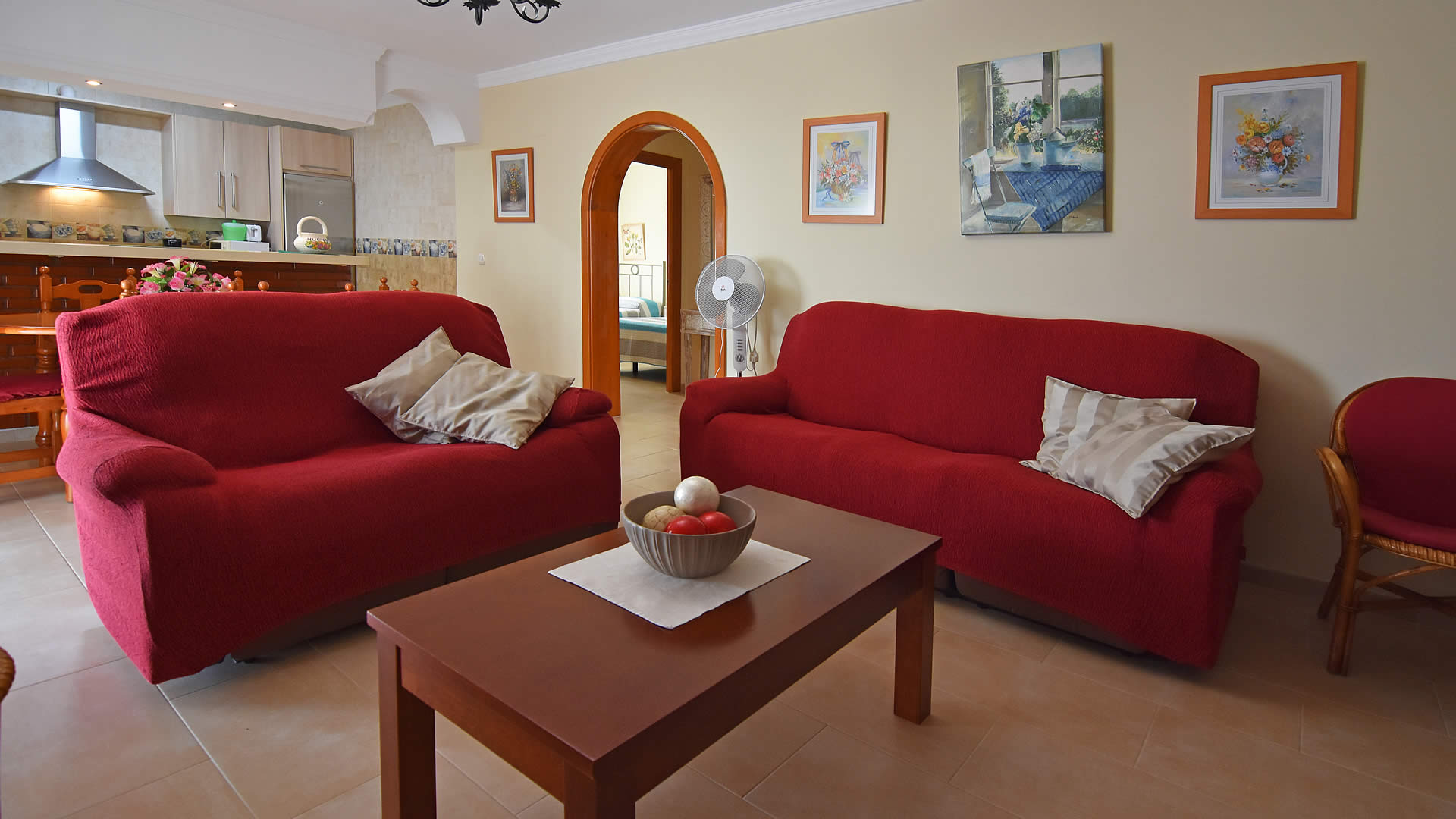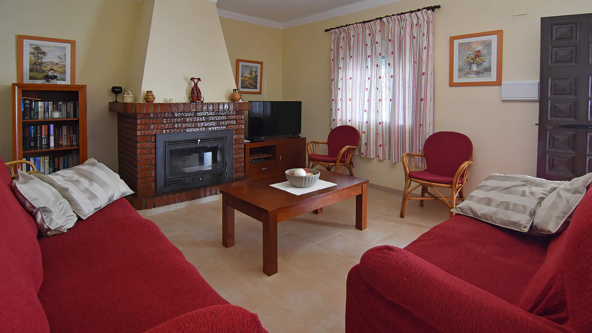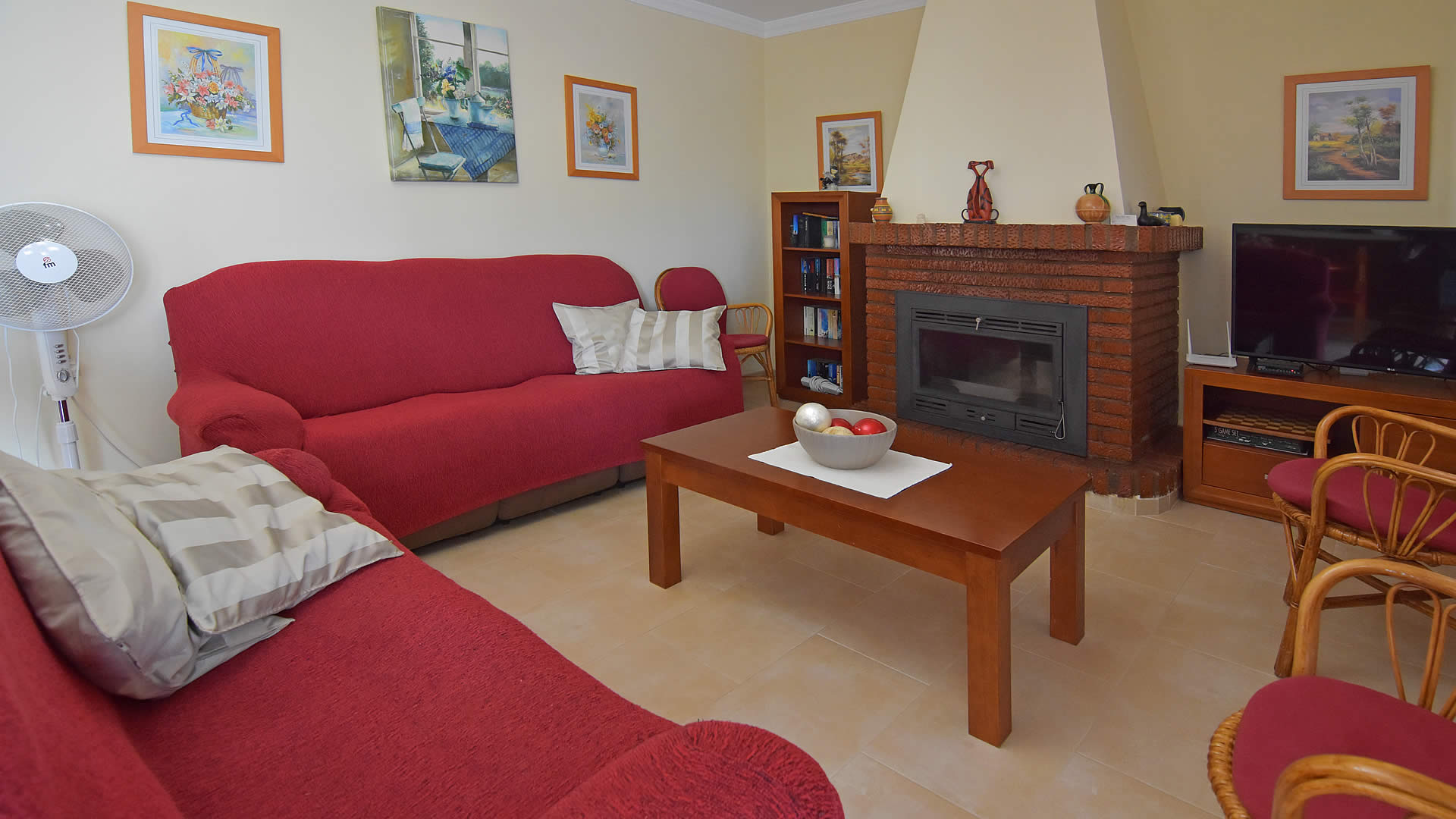 Het interieur is gezellig en goed uitgerust. De woon-eetkamer heeft een houtkachel en satelliet-tv, waardoor het de perfecte ruimte is om te ontspannen. De open keuken is volledig uitgerust met apparaten zoals een elektrische kookplaat, oven, magnetron en vaatwasser. Er zijn twee comfortabele slaapkamers, beide met airconditioning: één met een tweepersoonsbed en de andere met twee eenpersoonsbedden. De badkamer beschikt over een douche, wastafel en toilet, en er is ook een wasmachine beschikbaar voor gebruik door de gasten.