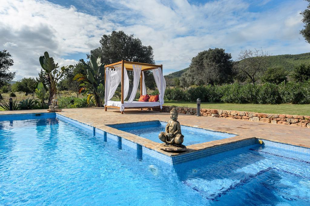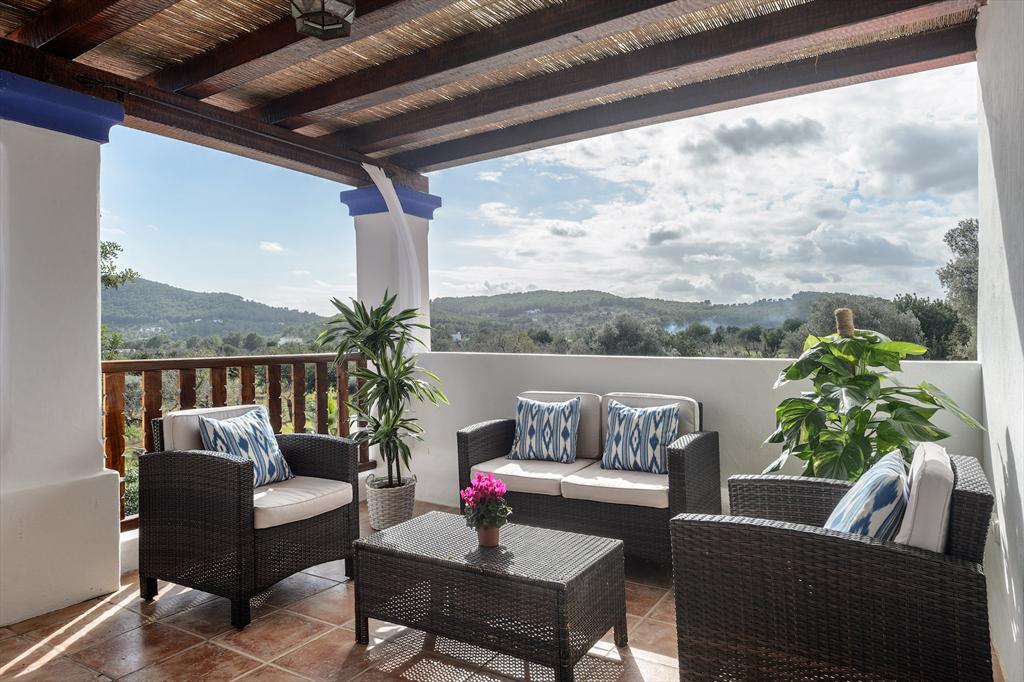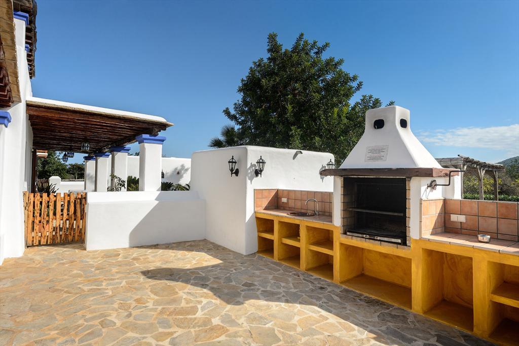Grote en leuke villa in San Carlos, Ibiza, Spanje met privé zwembad voor 8 personen. De vakantievilla ligt in een residentiële omgeving.