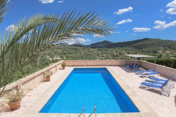 Villa met privé zwembad in Es Carritxo, op Mallorca, Spanje voor 8 personen. De vakantievilla ligt in een landelijke en bergachtige omgeving. De villa heeft 4 slaapkamers en 3 badkamers, verdeeld over 3 woonlagen. De accommodatie biedt prachtig uitzicht op de zee.